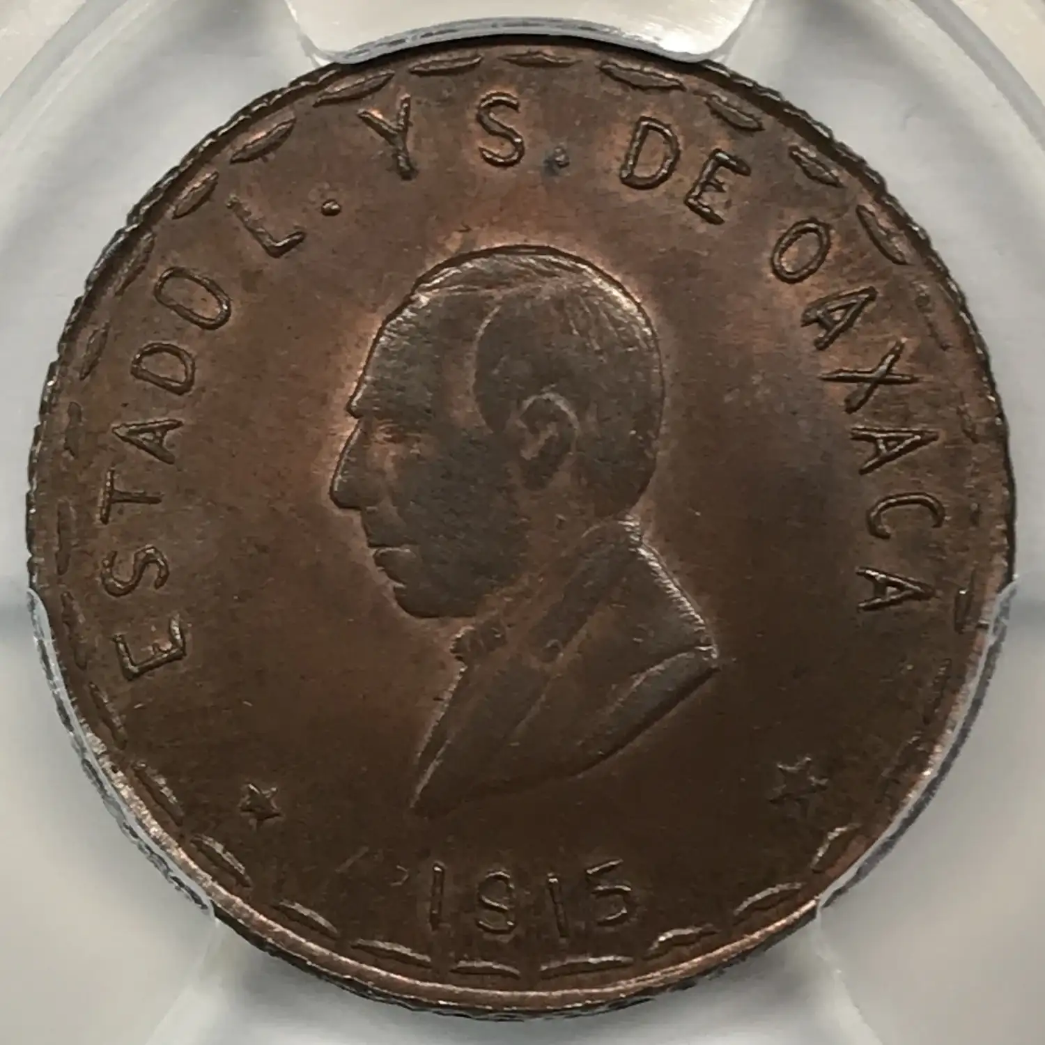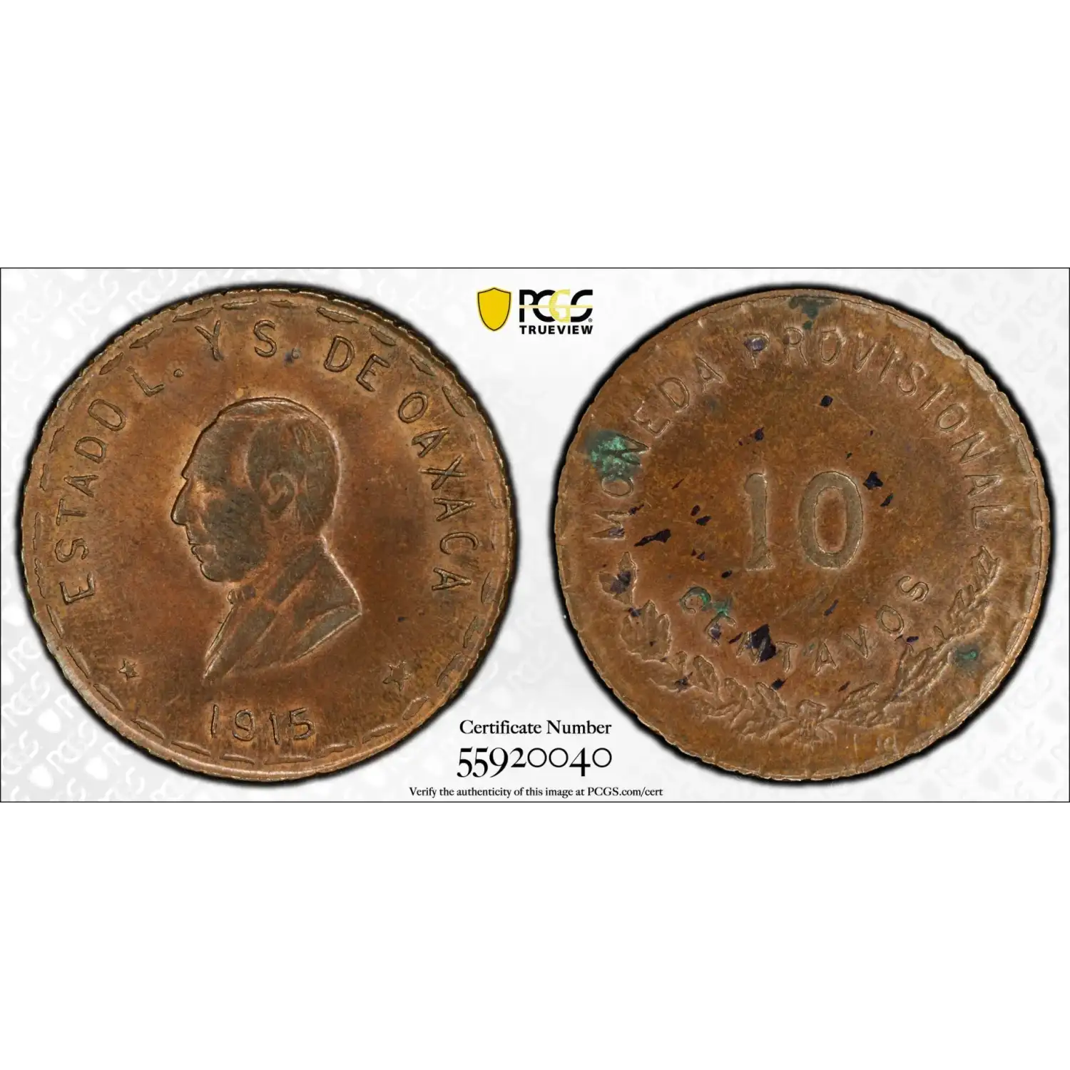 1915 Oaxaca Mexico Revolutionary Copper 10 Centavos PCGS UNC Details (environmental damage) - 7th Bust, KM-727.1, GB-310