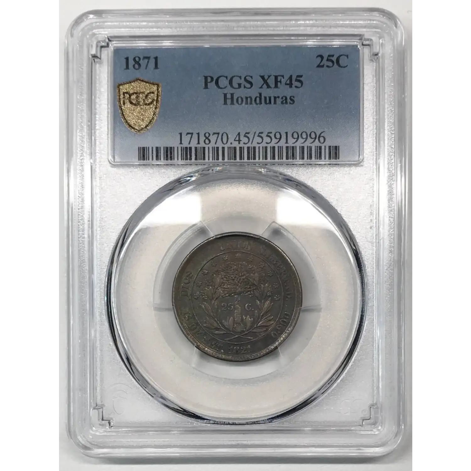 1871 Honduras Silver 25 CENTAVOS PCGS XF-45