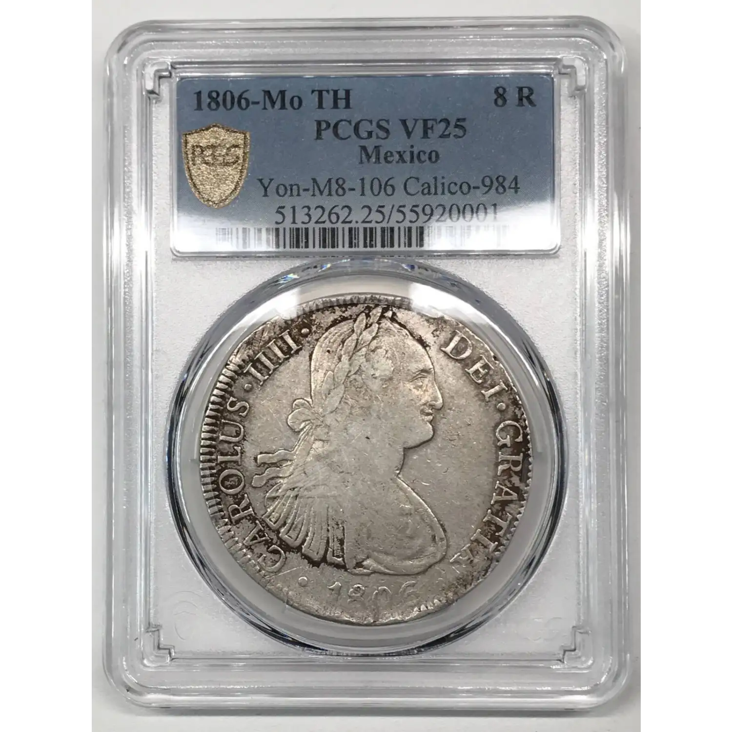 1806 Mo TH Mexico Silver 8 Reales PCGS VF-25 - Yon-M8-106, Calico-984, KM-109