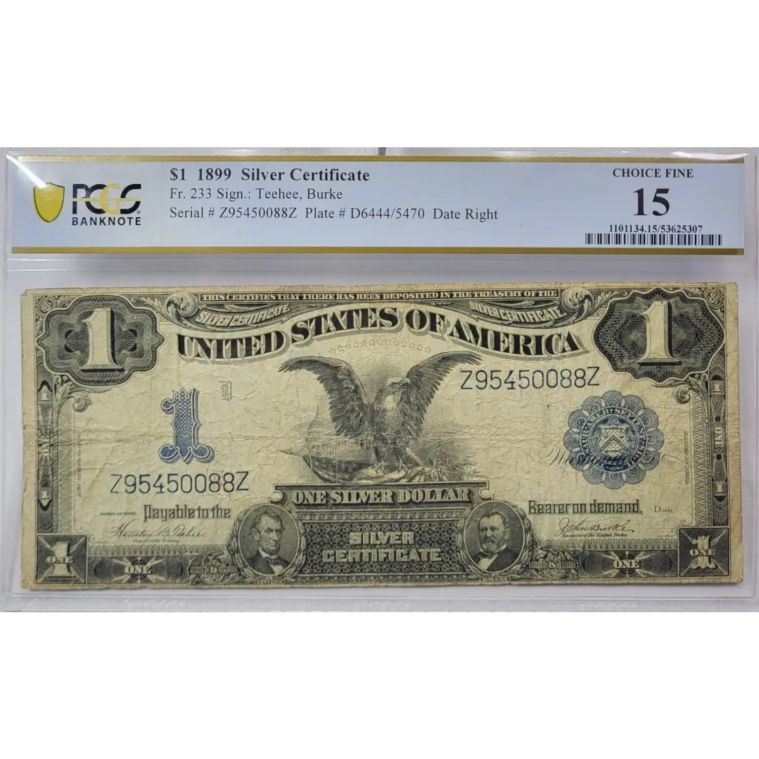 1899 $1 Large Size Silver Certificate Blue Seal PCGS Choice Fine 15