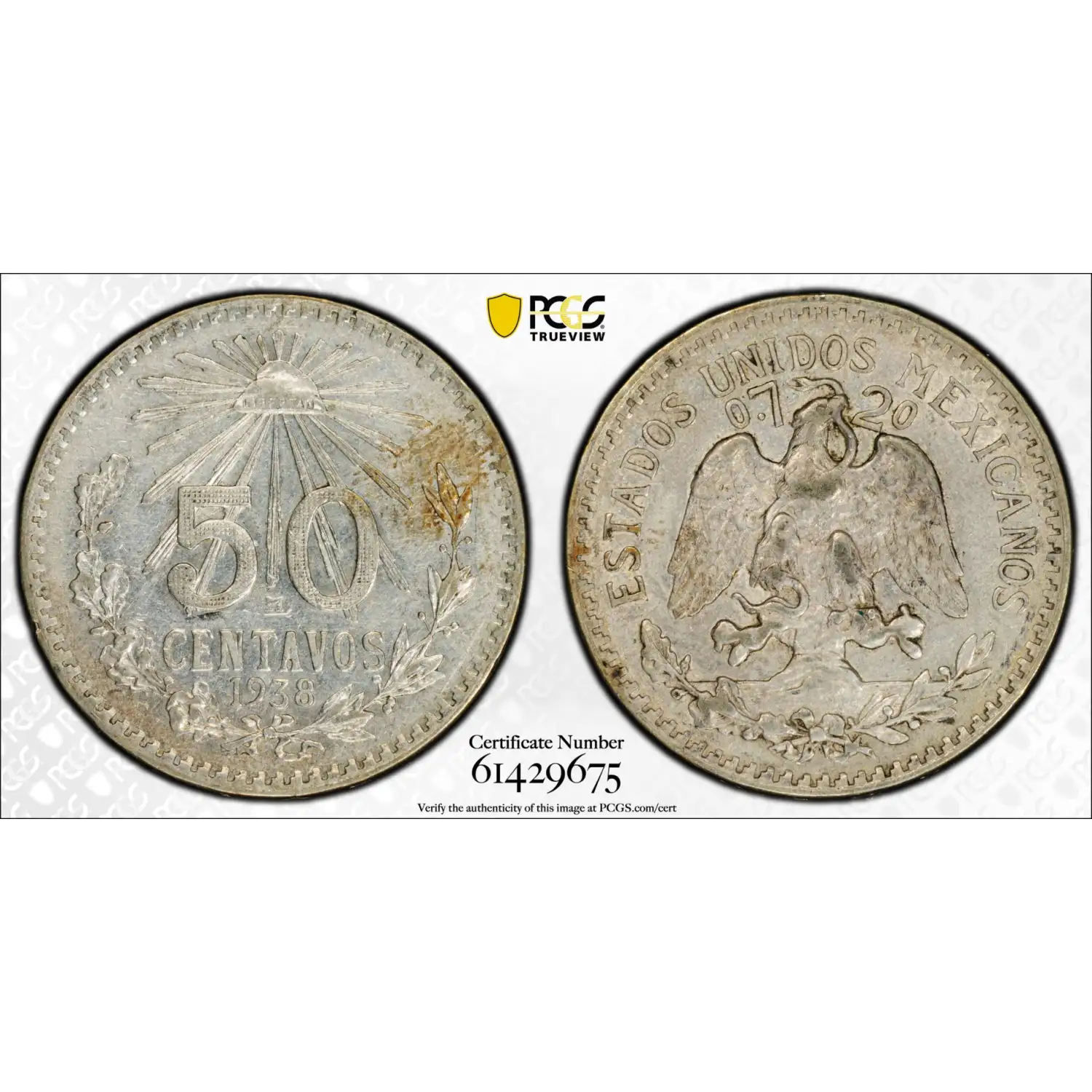 1938-M Mexico Silver 50 Centavos PCGS AU (cleaned) - KM#447