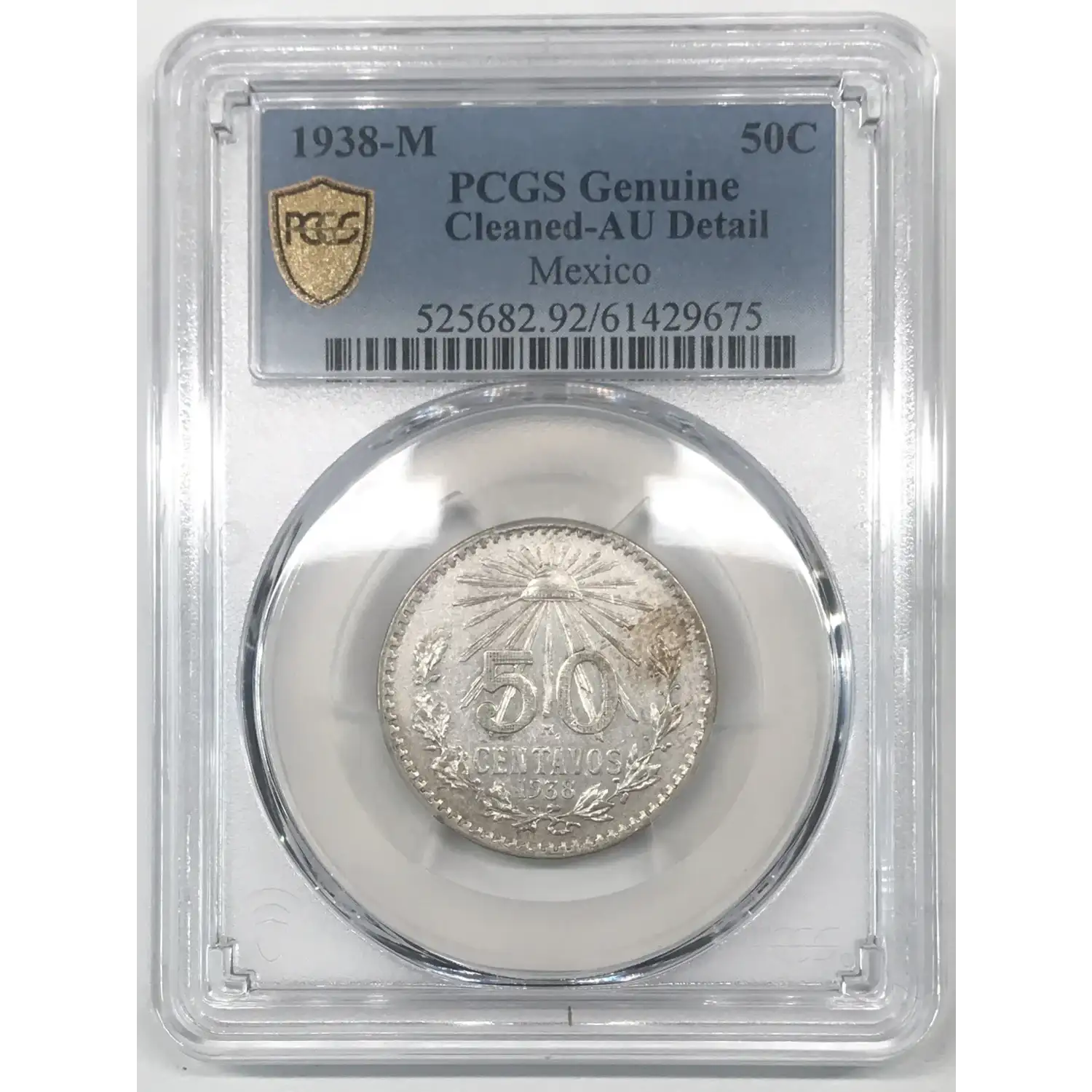 1938-M MEXICO Silver 50 CENTAVOS PCGS Genuine - AU Details (92 - Cleaned)