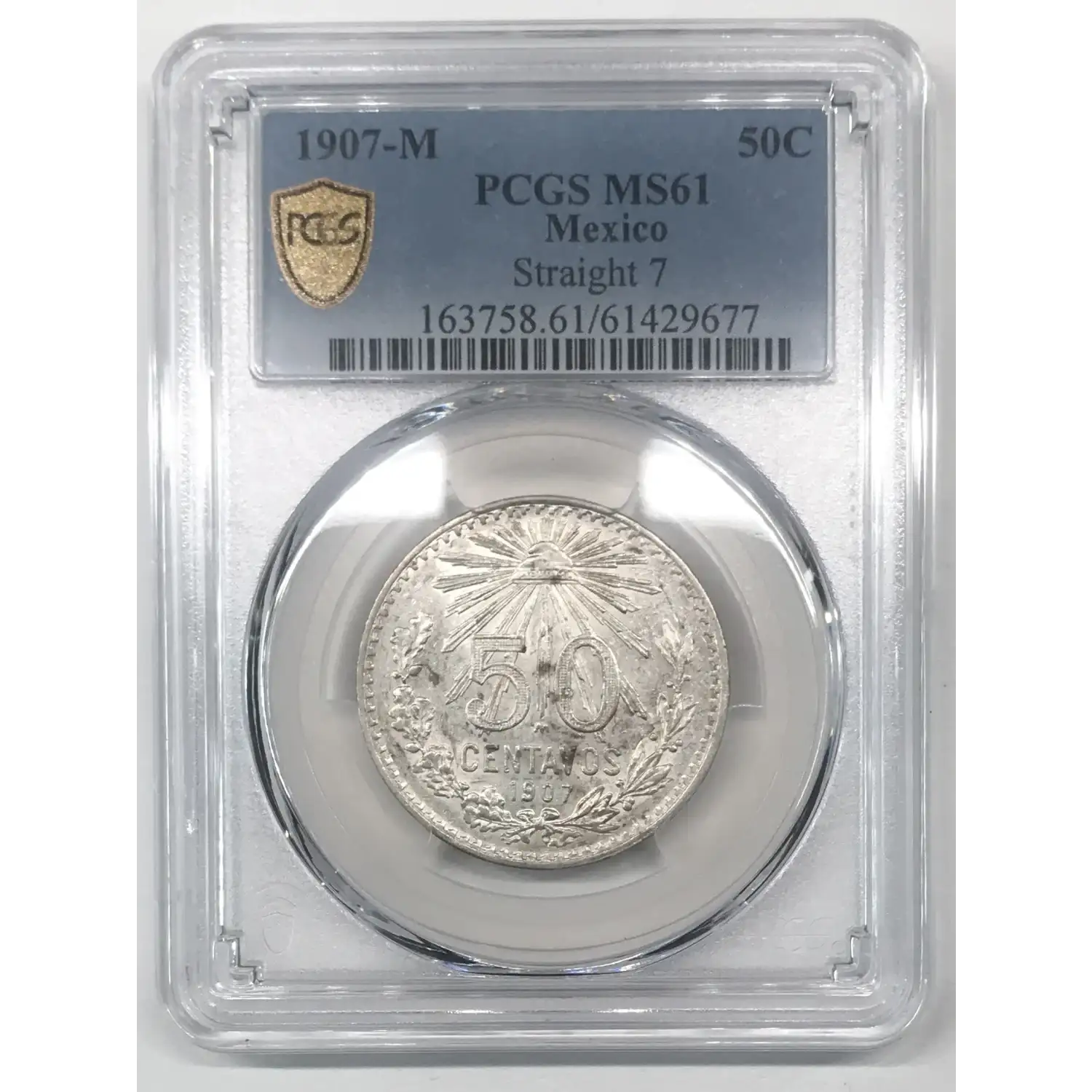 1907-M Straight 7 Mexico Silver 50 Centavos PCGS MS-61 - KM#445