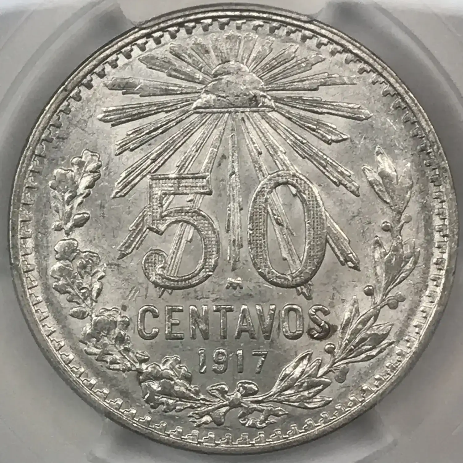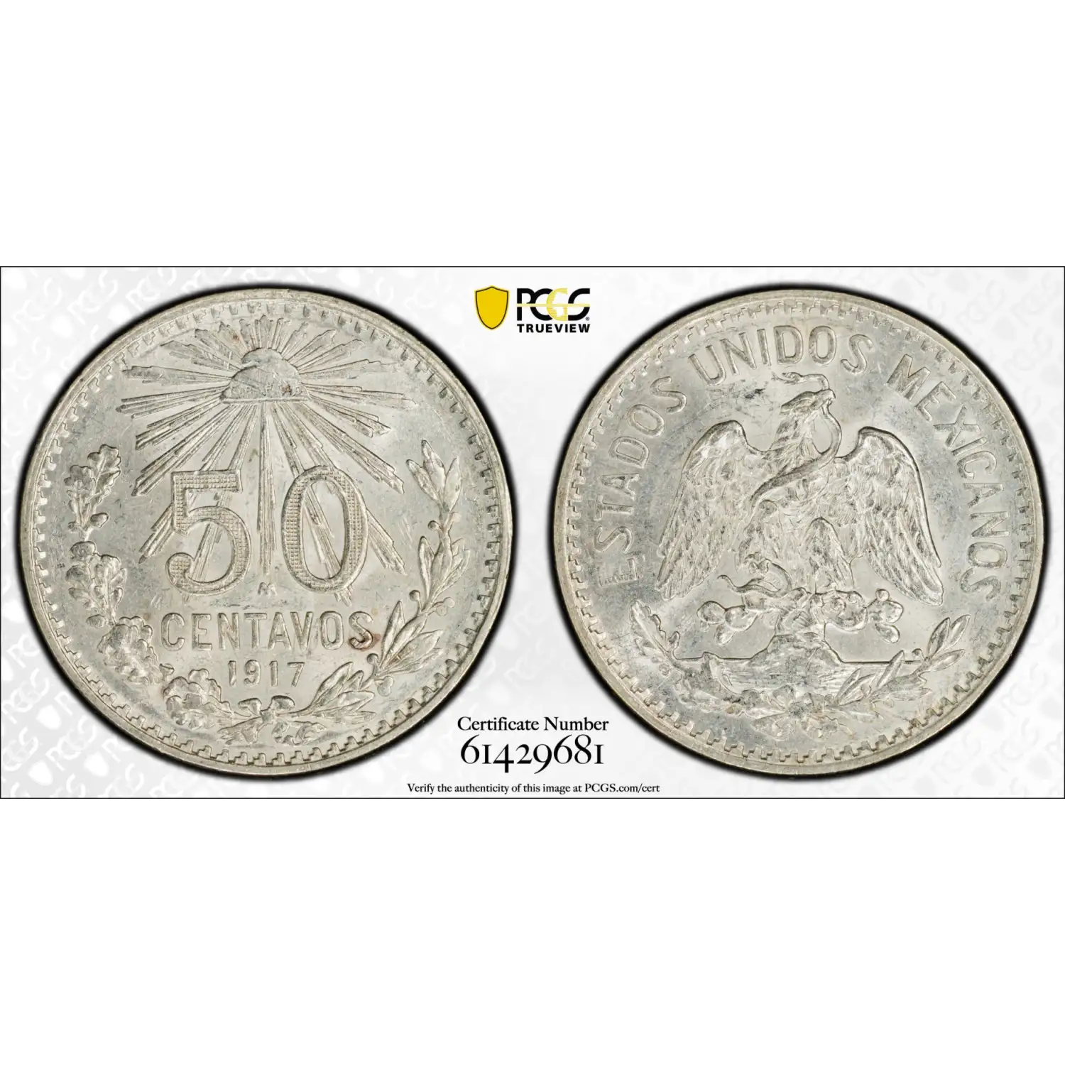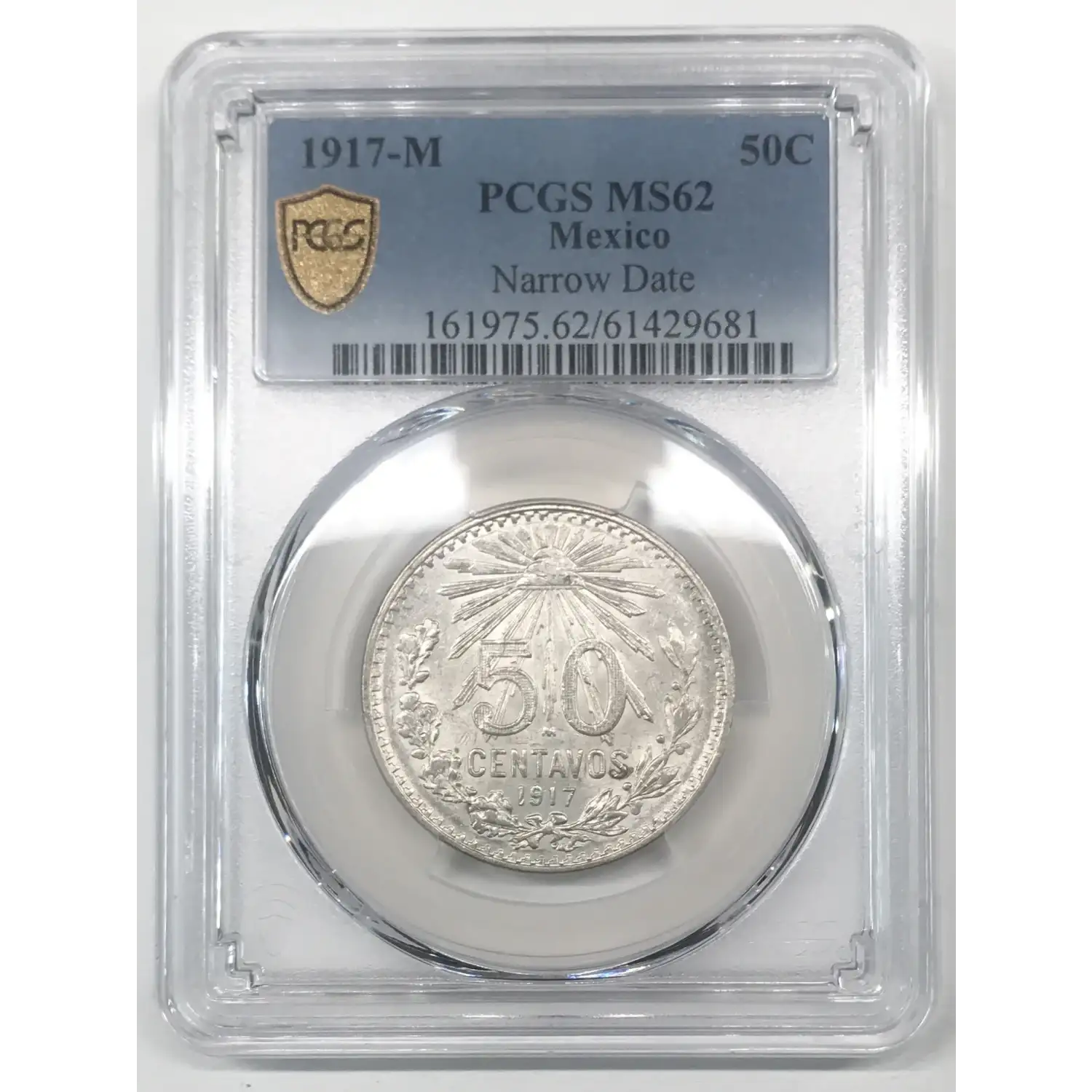 1917-M Narrow Date Mexico Silver 50 Centavos PCGS MS-62 - KM#445
