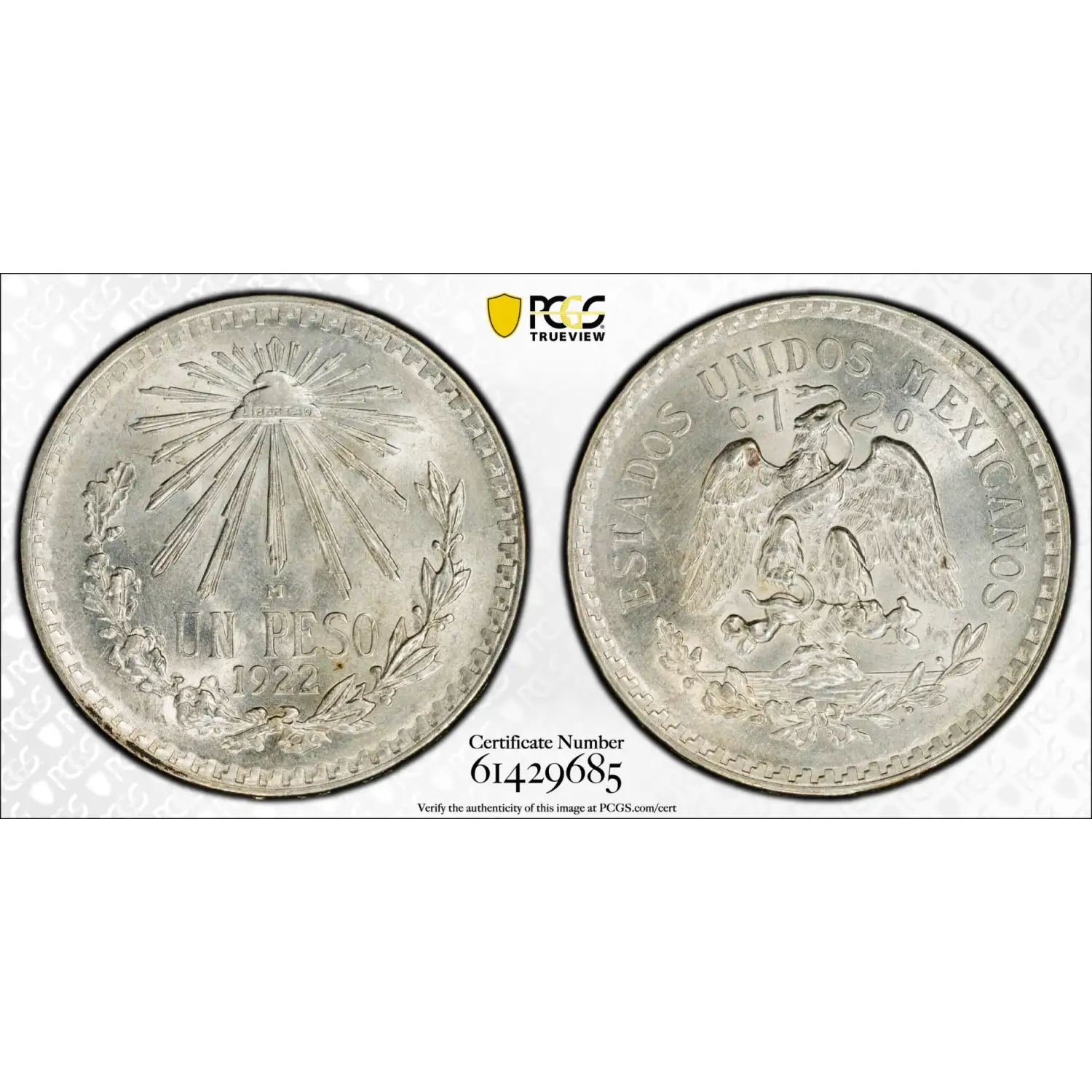1922-M Mexico Silver Peso PCGS MS-62 - KM-455