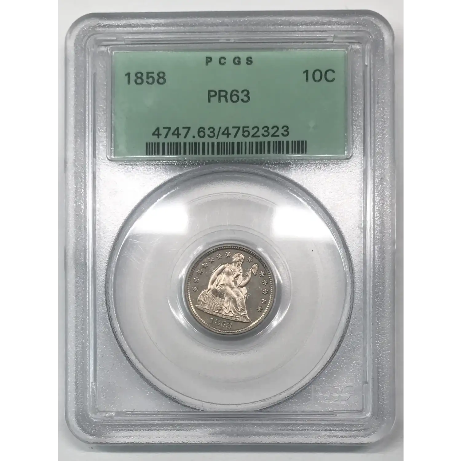 1858 Proof Seated Liberty Dime (10C) PCGS PR-63 - Gen 3.1 Old Green Holder (OGH)