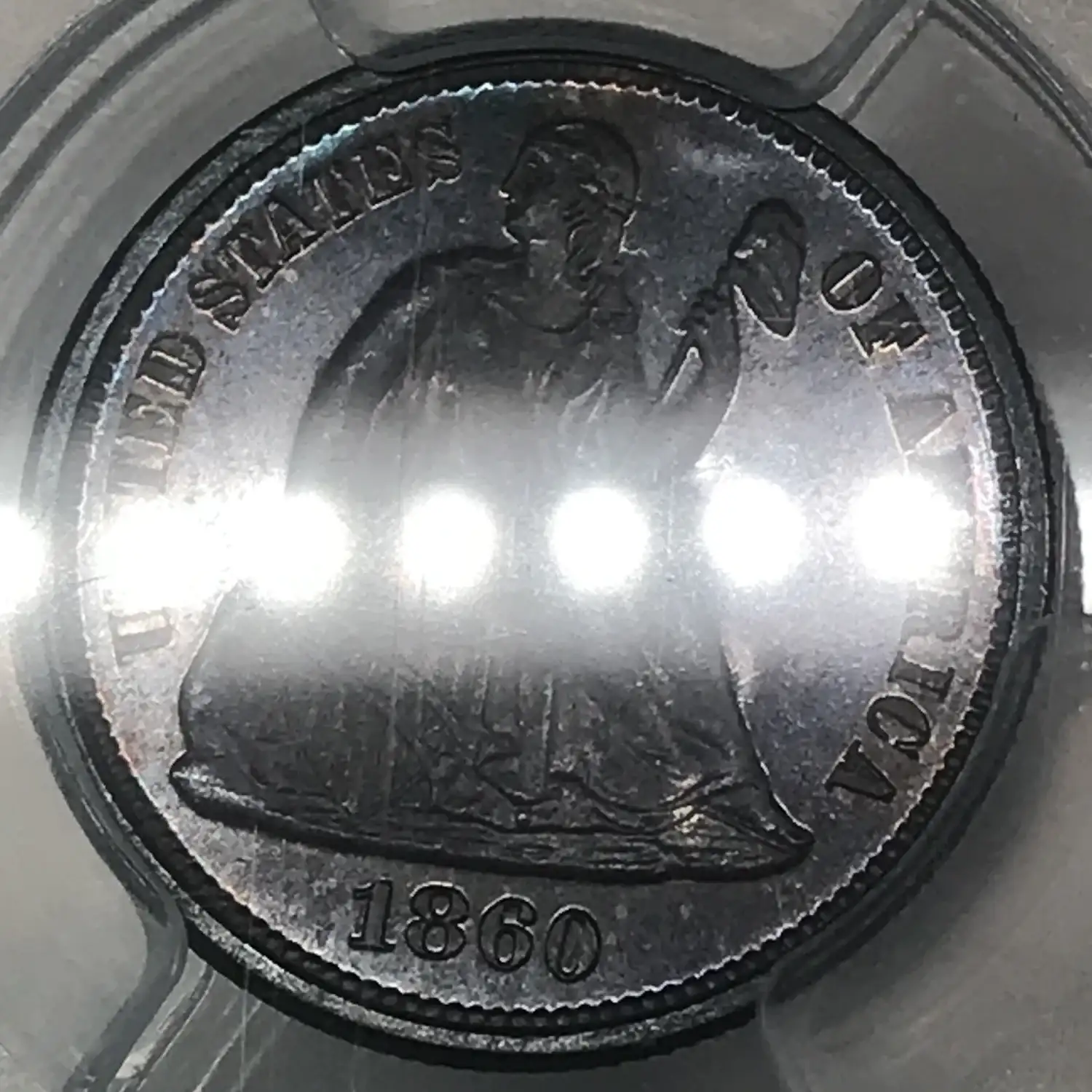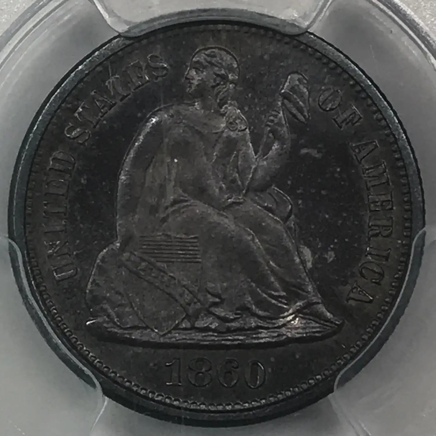 1860 Proof Seated Liberty Dime (10C) PCGS PR-66 - nice even dark blue/purple tone
