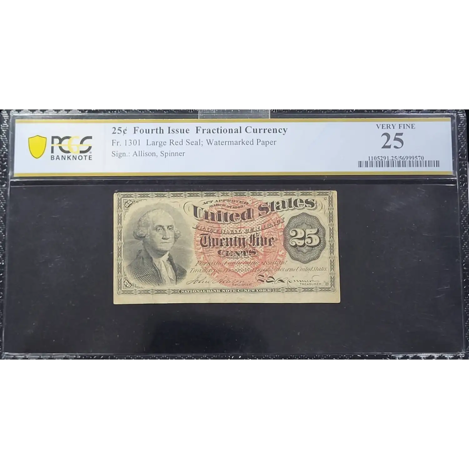 Fourth Issue 25c Fractional Currency Large Red Seal Fr. 1301 PCGS Very Fine 25