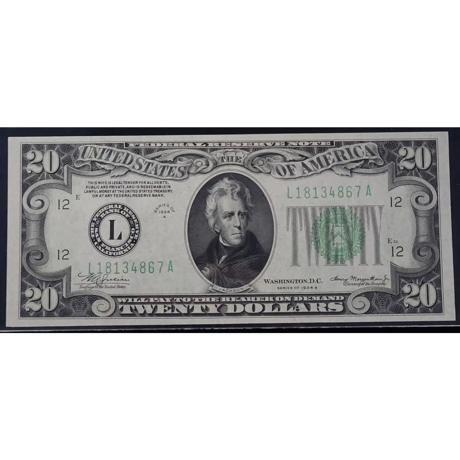 $20 1934-A. blue-Green seal. Small Size $20 Federal Reserve Notes 2055-L