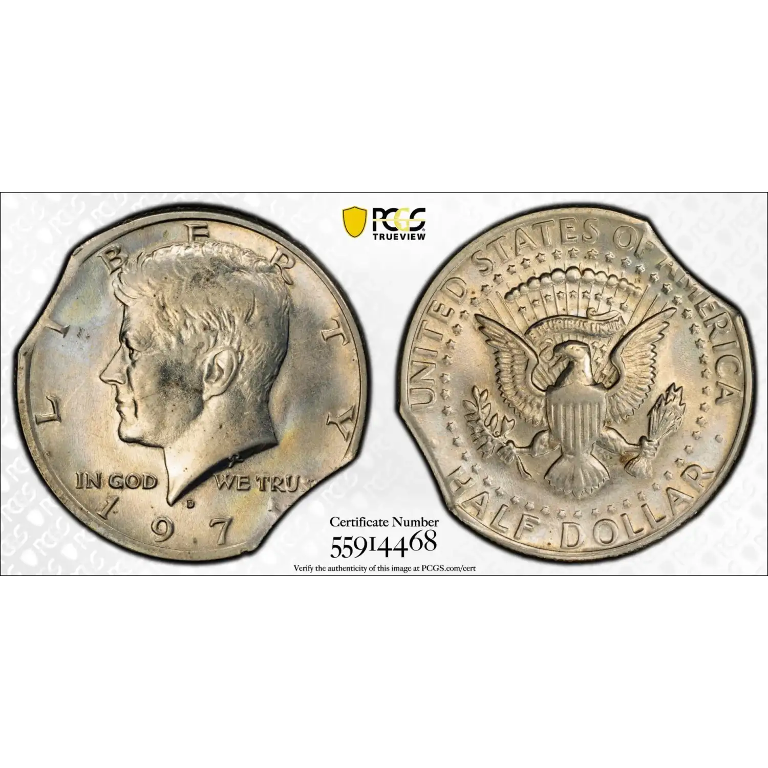 1971-D Kennedy Half Dollar PCGS AU-53 - Double-Clipped Planchet Mint Error