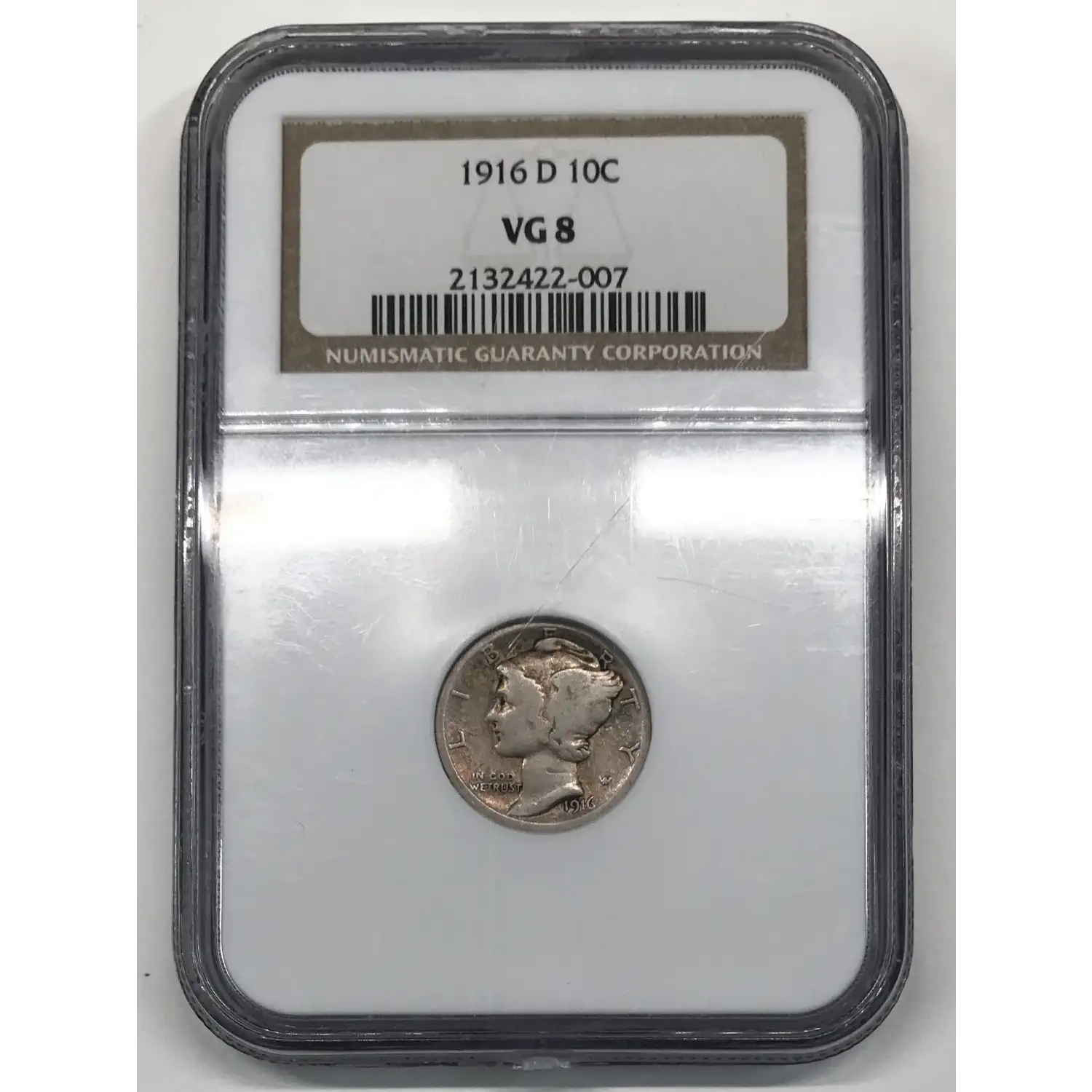 1916 D Mercury Dime NGC VG-08 / VERY GOOD 8 - heavy scratch on front of slab (mostly over white space, not coin)
