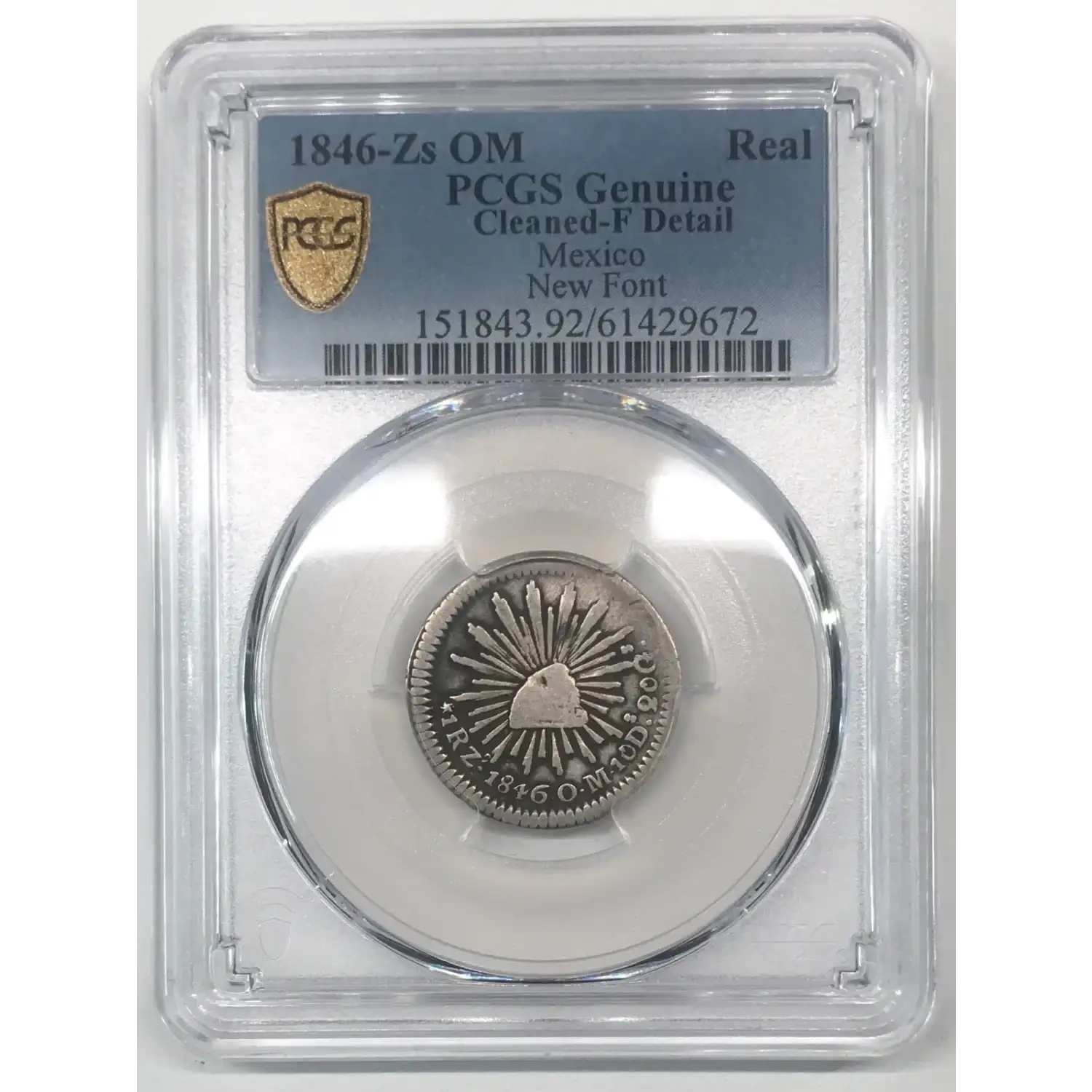 1846-Zs OM Mexico Silver 1 Real PCGS F/Fine (cleaned) - New Font