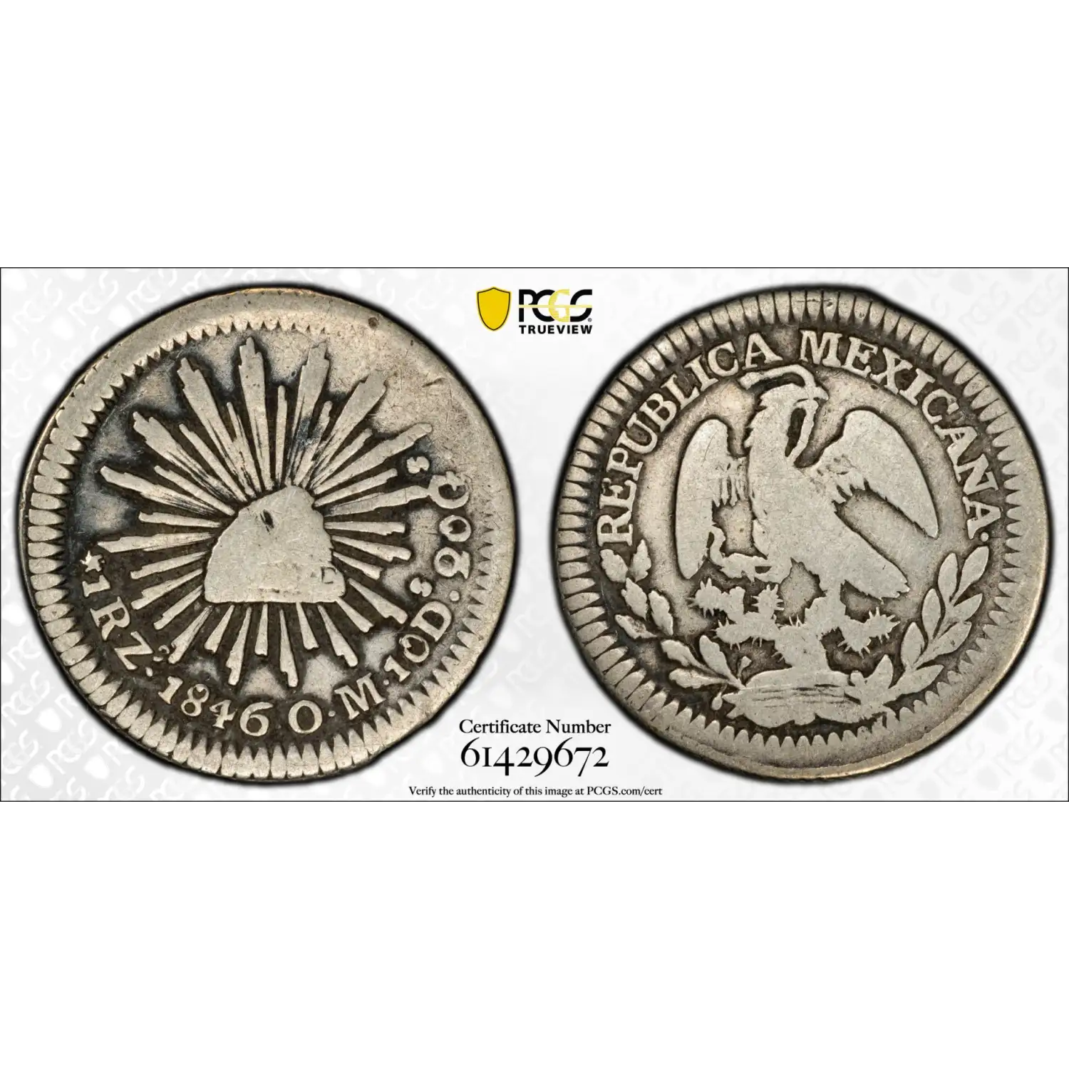 1846-Zs OM Mexico Silver REAL PCGS Genuine - Fine Details (92 - Cleaned) New Font