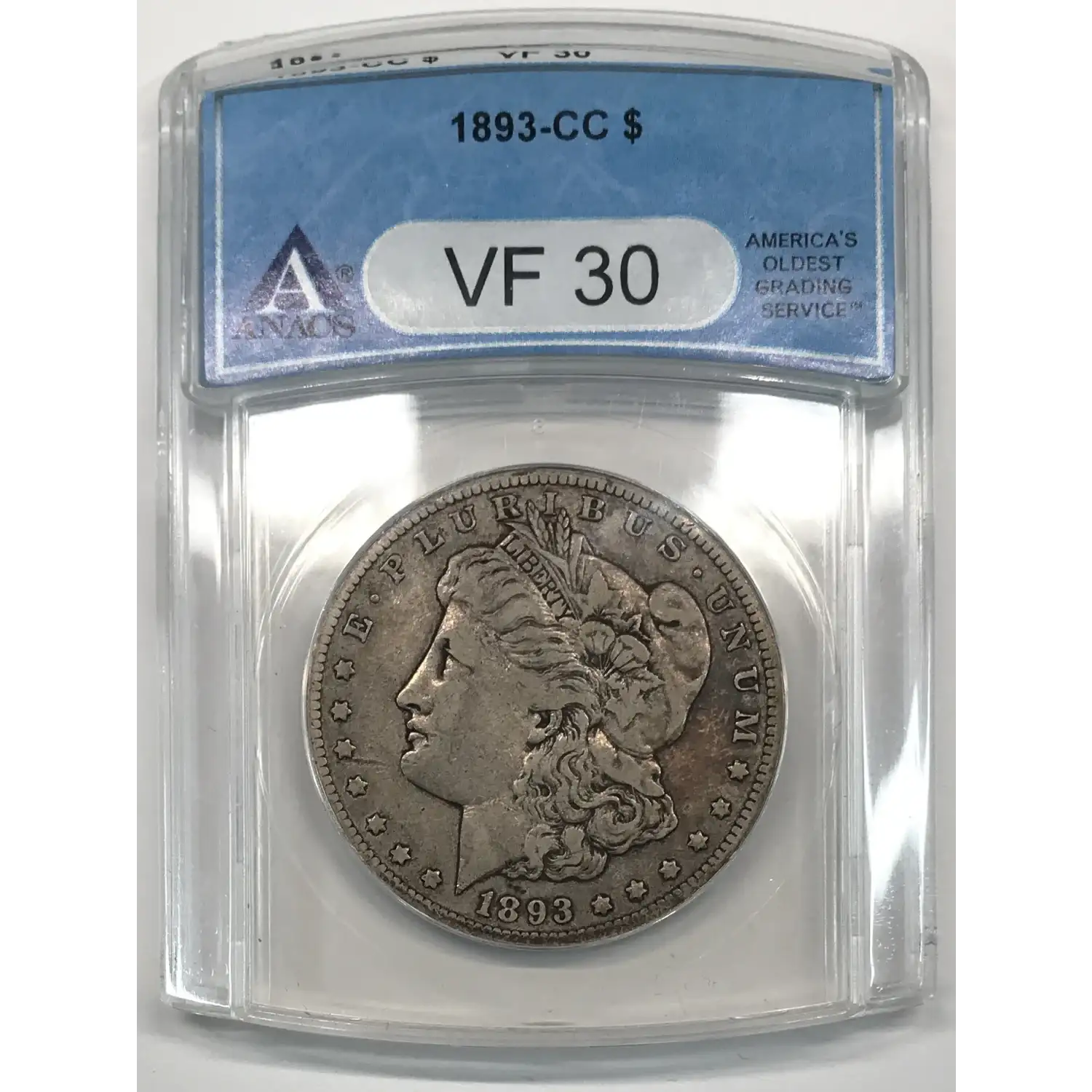 1893 CC Morgan Silver Dollar ANACS VF-30
