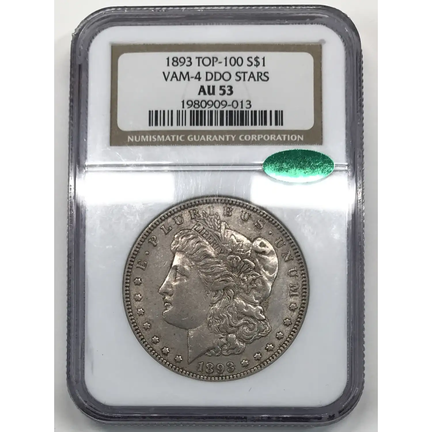 1893 Morgan Silver Dollar NGC AU-53 TOP 100 VAM-4 DDO DOUBLED STARS CAC