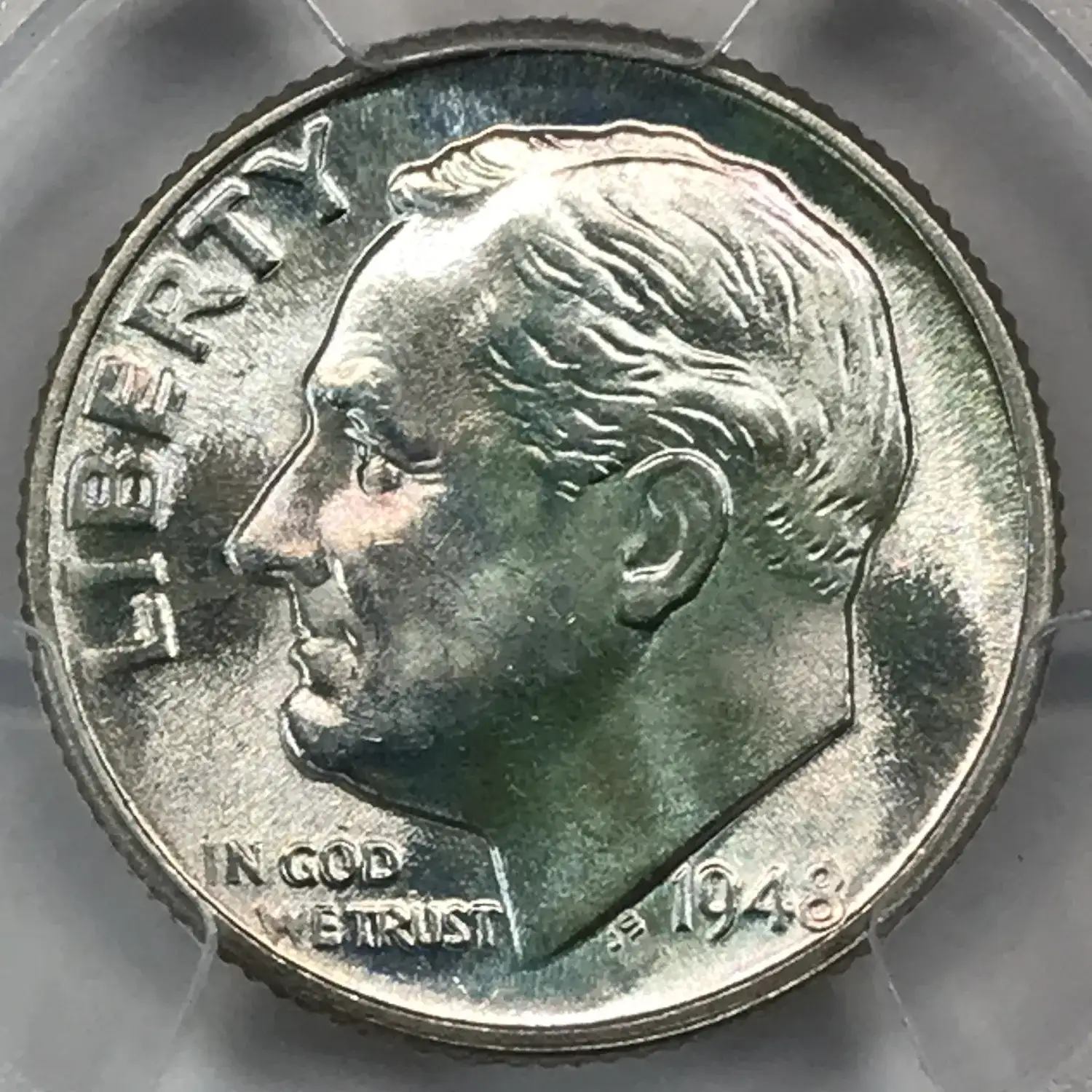 1948 D Roosevelt Dime PCGS MS-64 FB - subtle iridescent Rainbow Toning - nice attractive coin for the grade