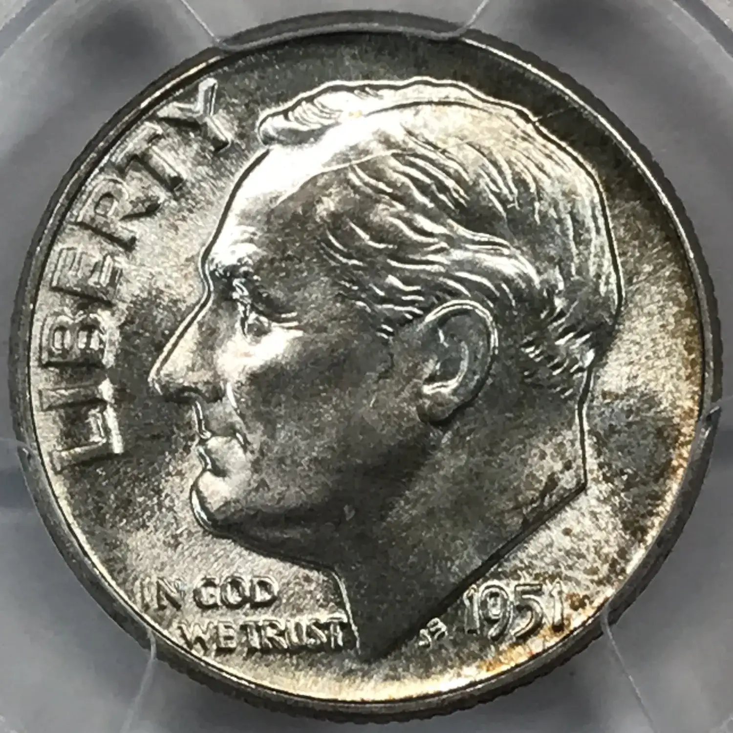 1951 P Roosevelt Dime PCGS MS-65 FB - die crack over forehead/head/hair