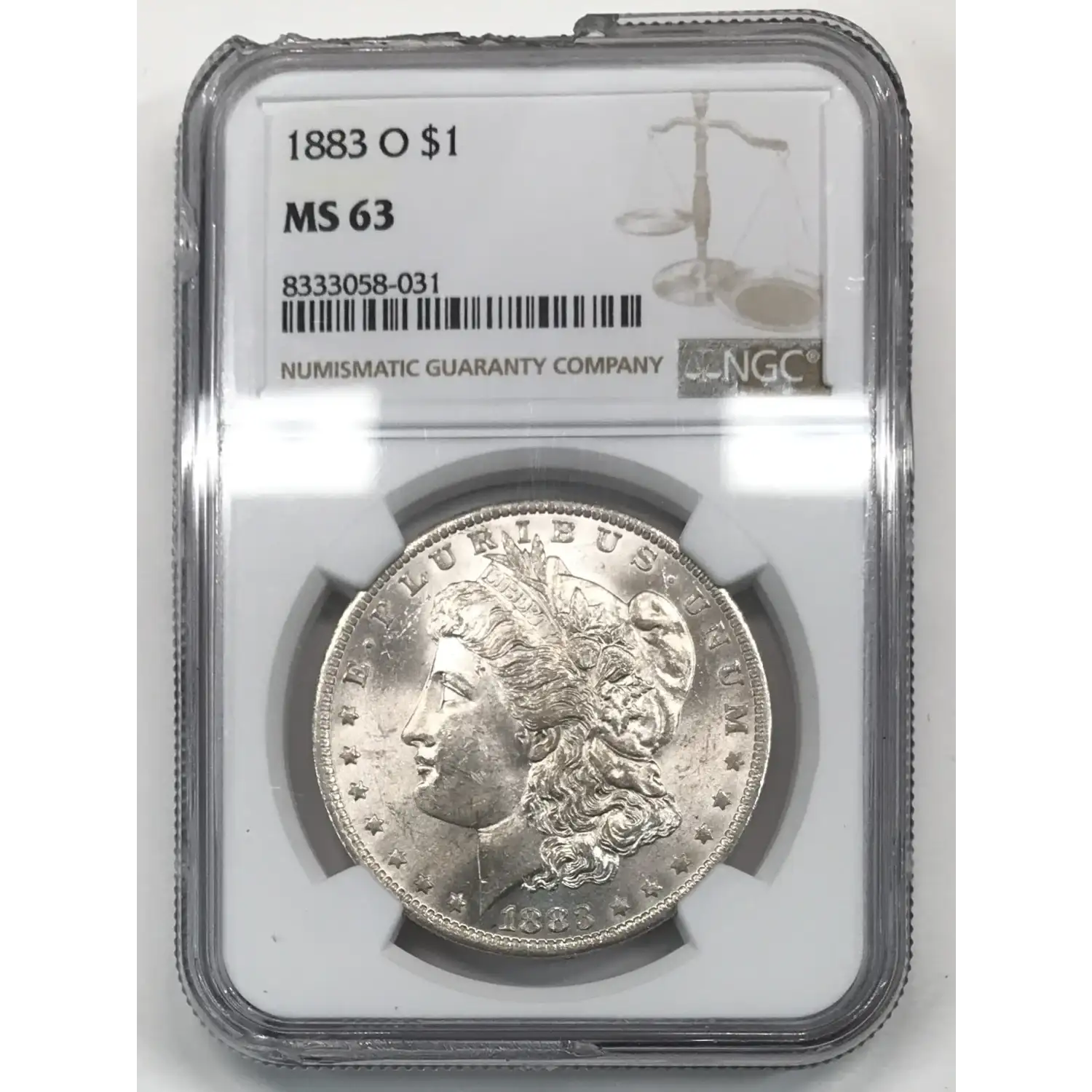 1883 O Morgan Silver Dollar NGC MS-63 - plastic chipping on front of slab