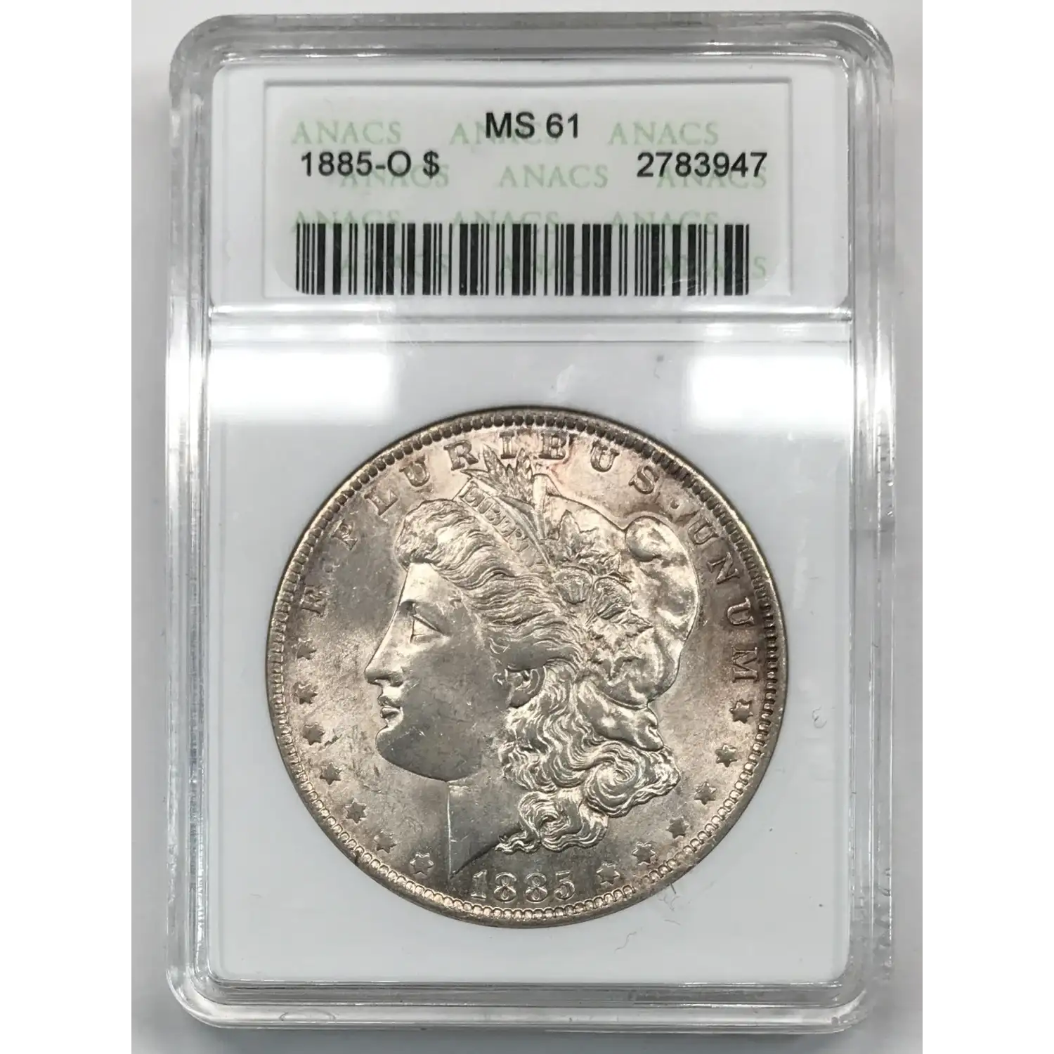 1885 O Morgan Silver Dollar ANACS MS-61 - old white soapbox holder - nice look for grade