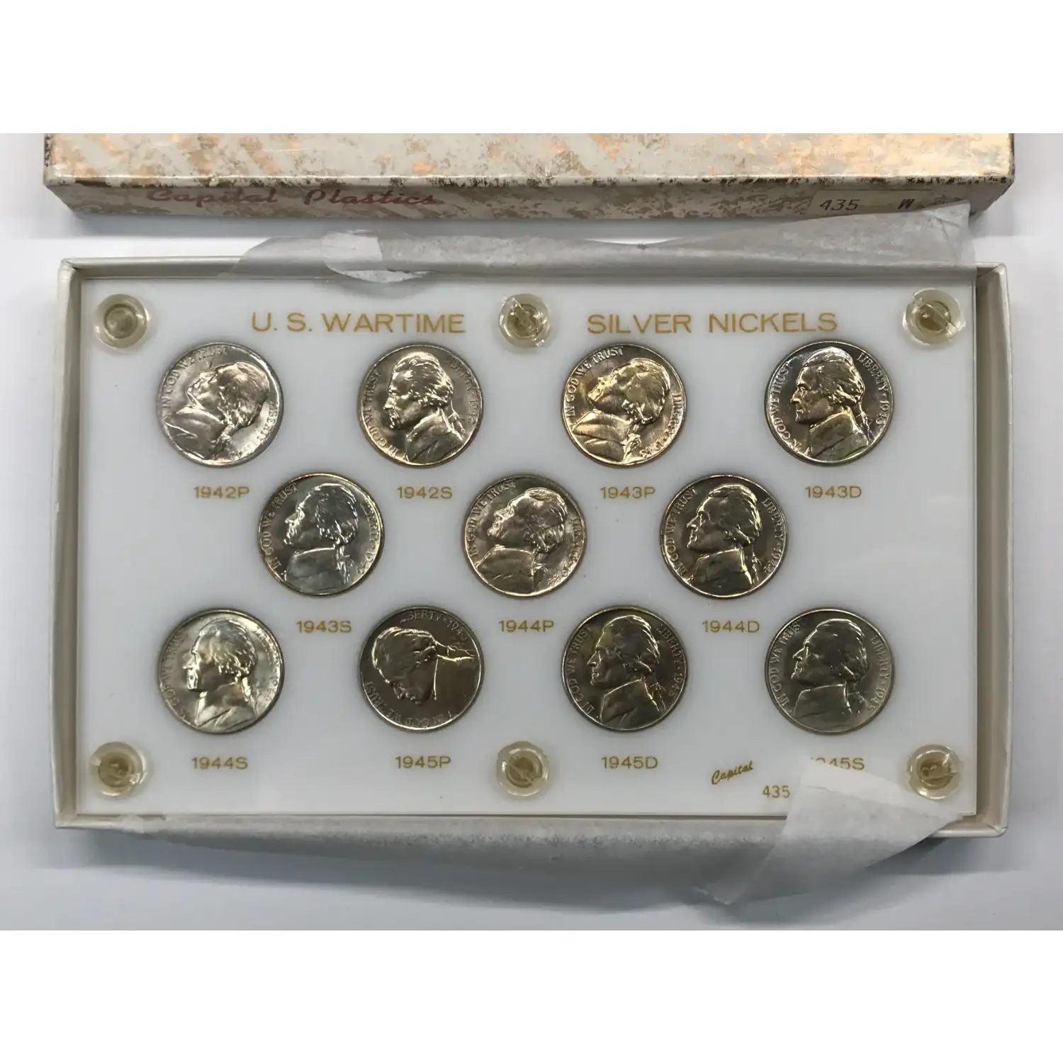 1942-1945 PDS World War II Silver Jefferson Nickel 11-Coin Set in Capital Plastics Holder 435 W - BU/Uncirculated - nice toning