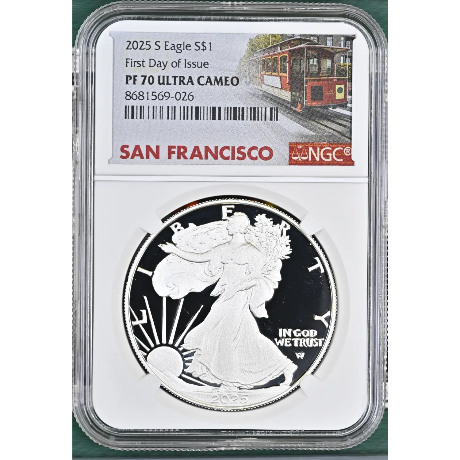 2025-S Proof Silver Eagle NGC PF-70 ULTRA CAMEO - First Day of Issue - San Francisco Trolley Label