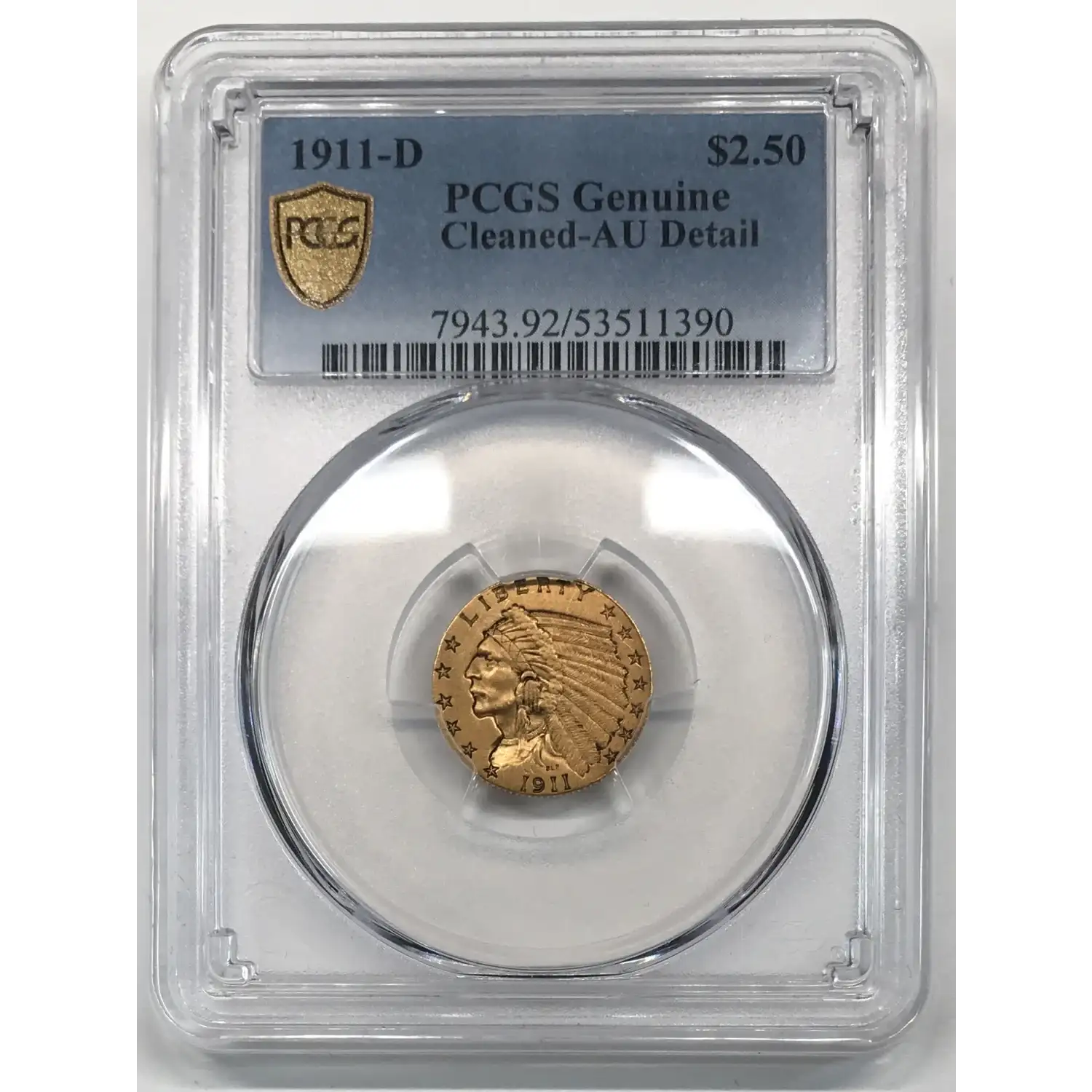 1911-D $2.50 Gold Indian Head Quarter Eagle PCGS Genuine - AU Details (92 - Cleaned) Strong D