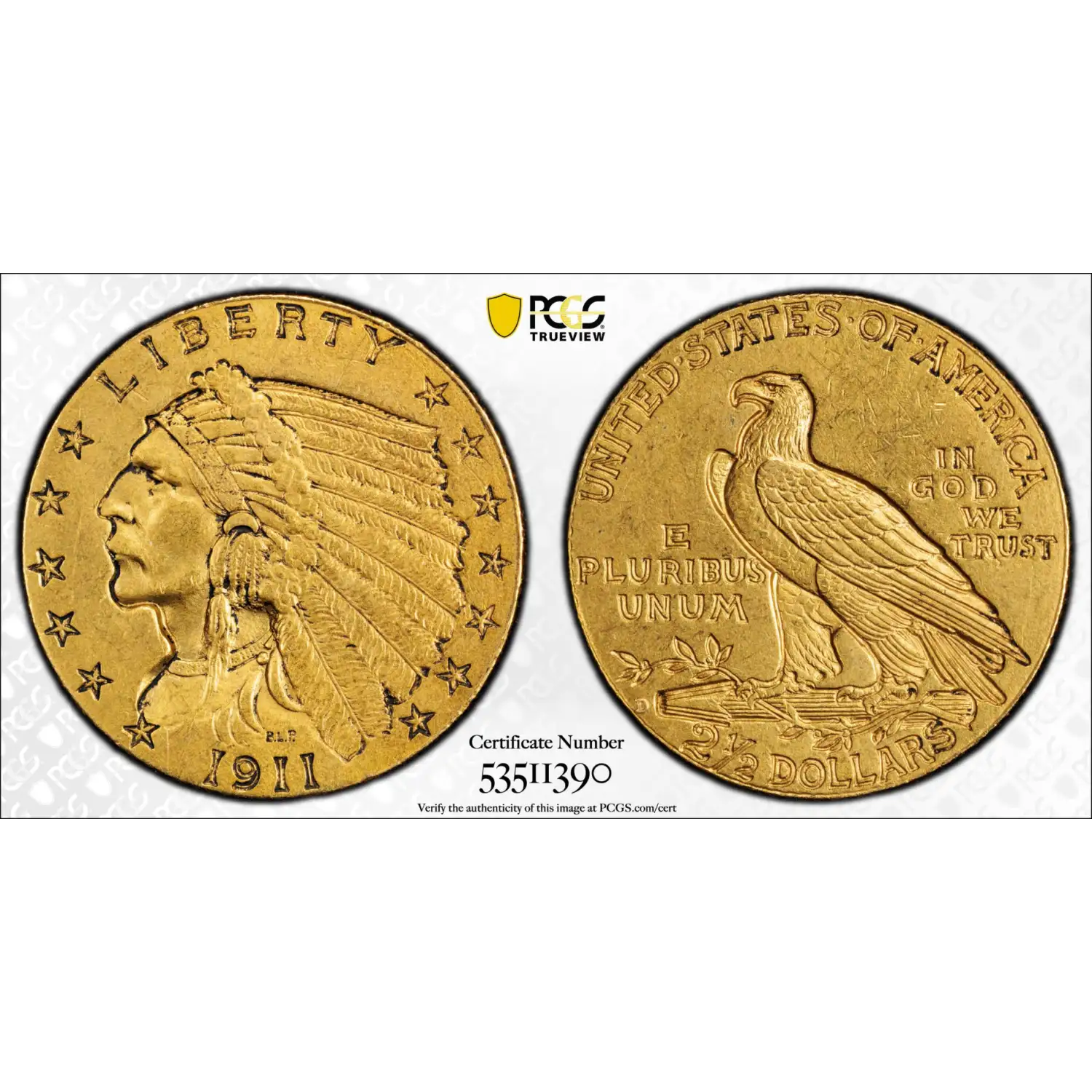 1911-D Strong D $2.50 Gold Indian Head Quarter Eagle PCGS Genuine - AU Details (cleaned) - nice attractive coin despite details grade