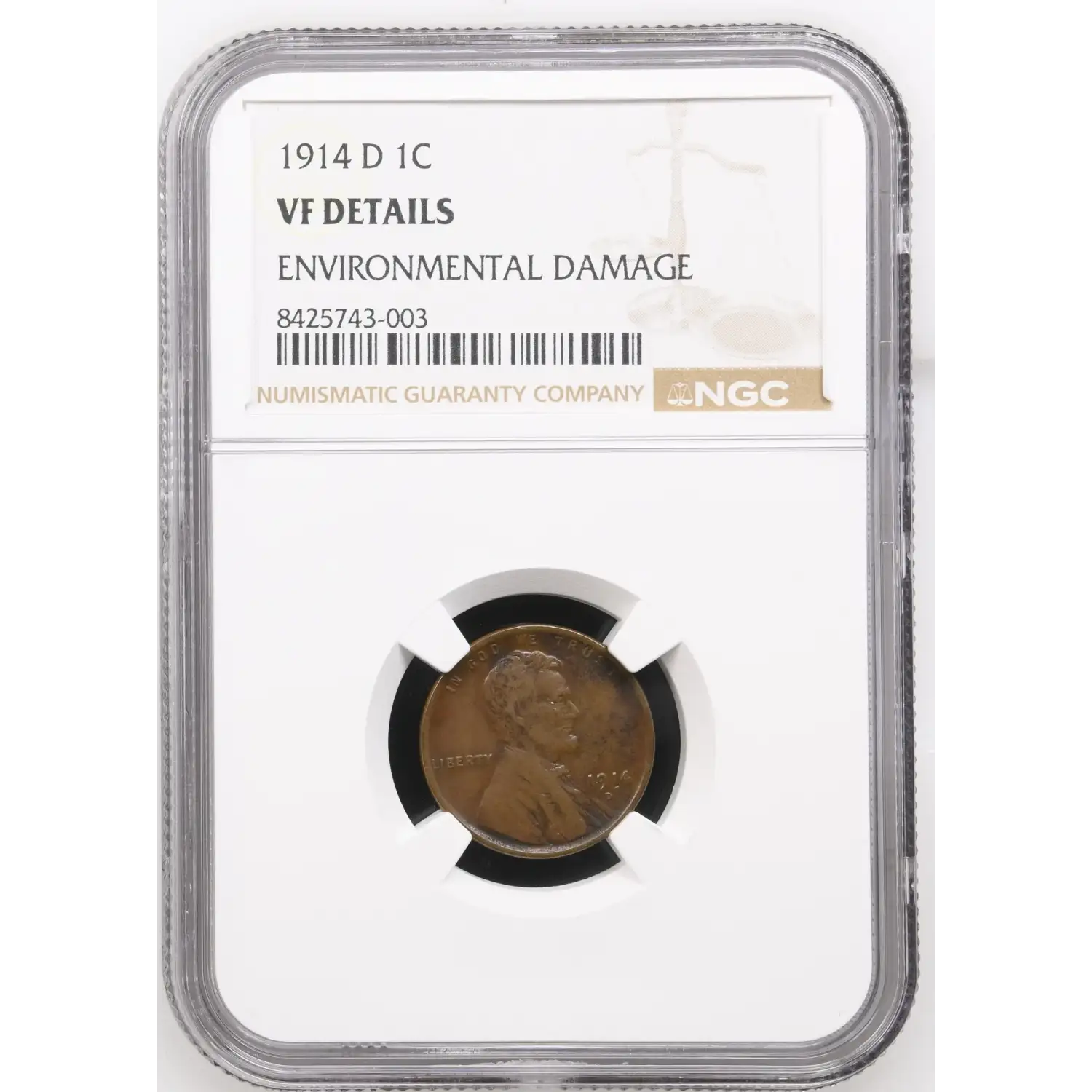 1914 D Lincoln Wheat Cent NGC VF DETAILS (environmental damage) - was PCGS VF20