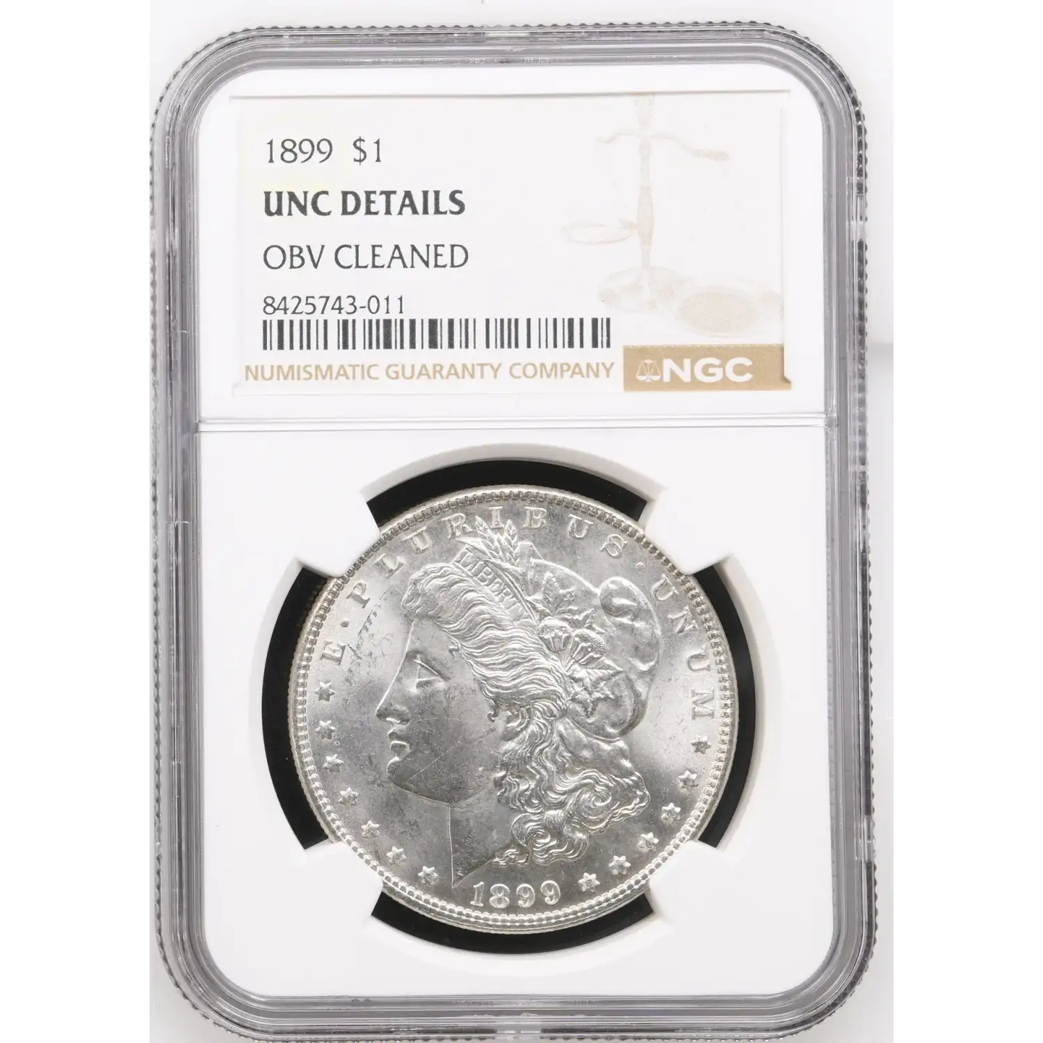 1899 P Morgan Silver Dollar NGC UNC Details (obverse cleaned) - nice attractive coin despite details grade