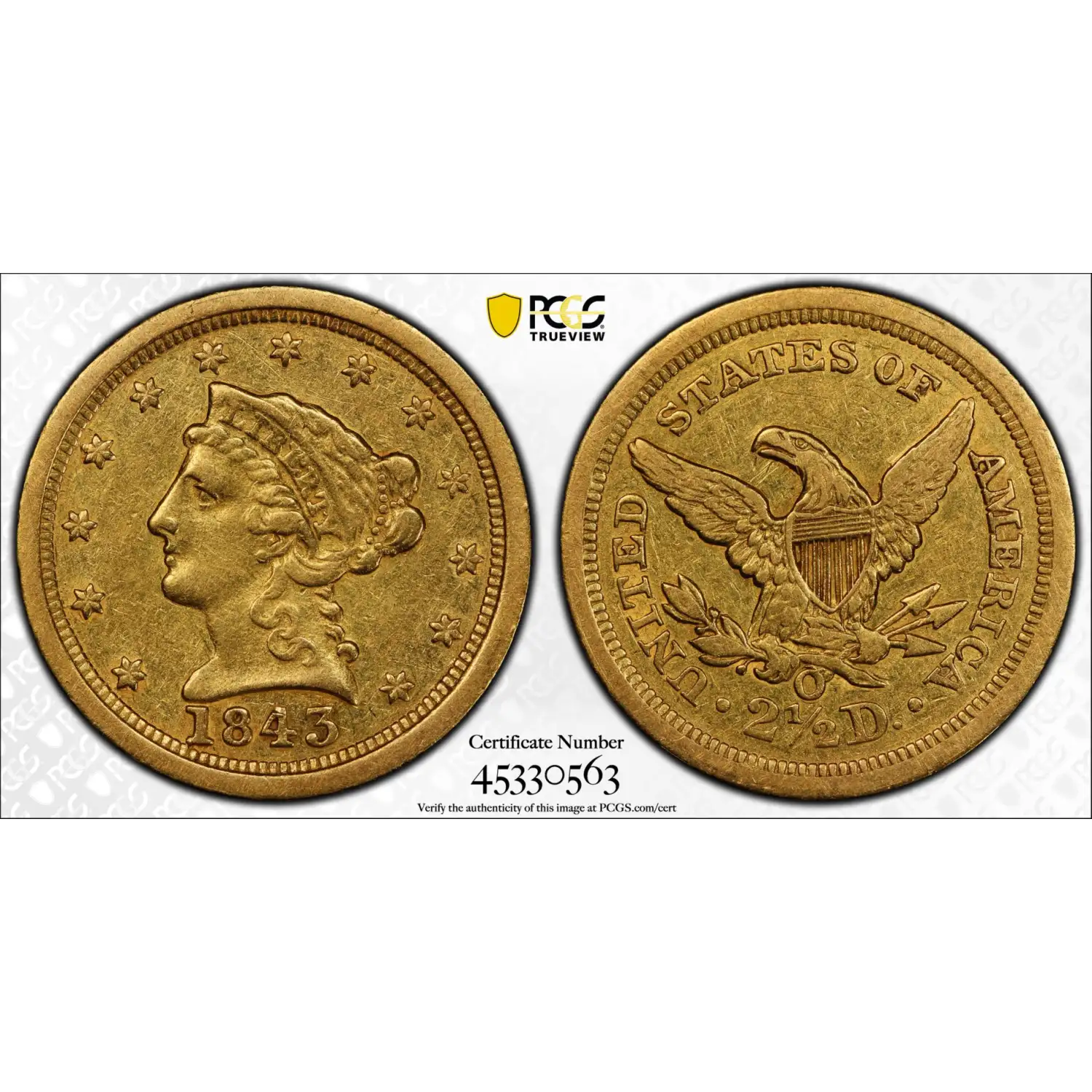 1843-O $2.50 Gold Liberty Head Quarter Eagle PCGS XF-45 Large Date