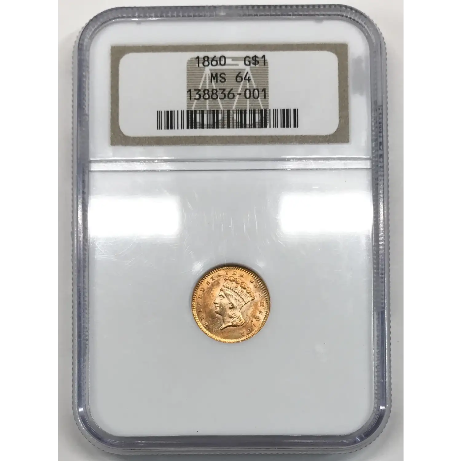 1860 P Indian Princess Gold Dollar NGC MS-64 - nice coin