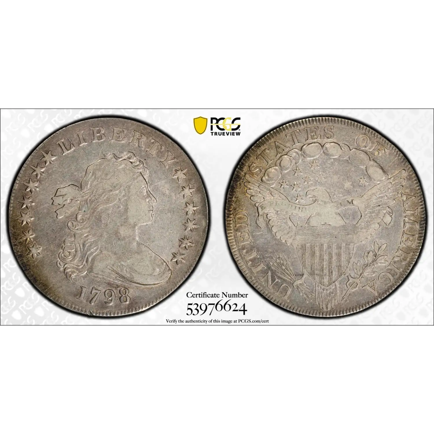 1798 P Large Eagle Draped Bust Silver Dollar PCGS VF-30
