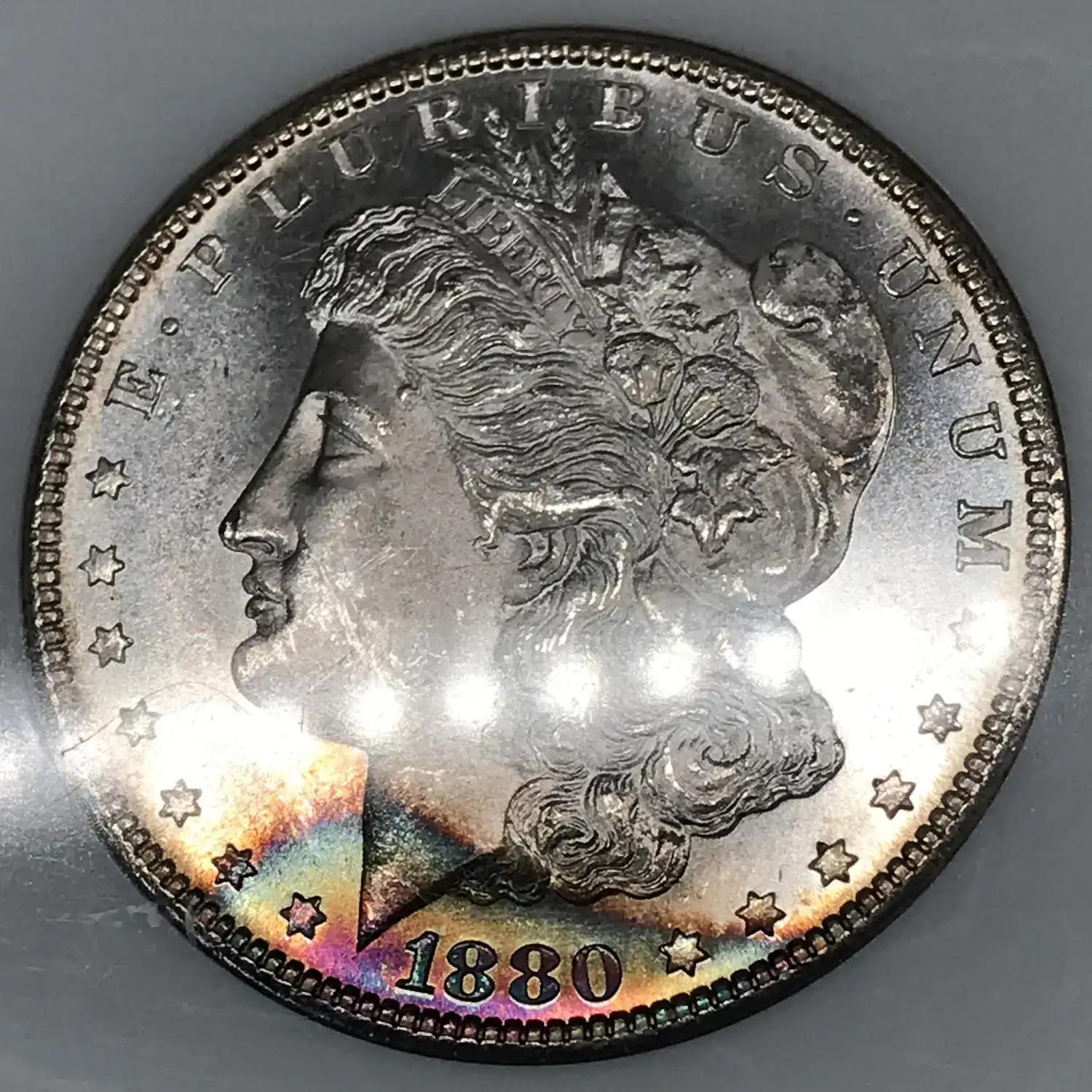 1880 S Morgan Silver Dollar NGC MS-65 - Scarce Gen 8 Holder - Rainbow Toning