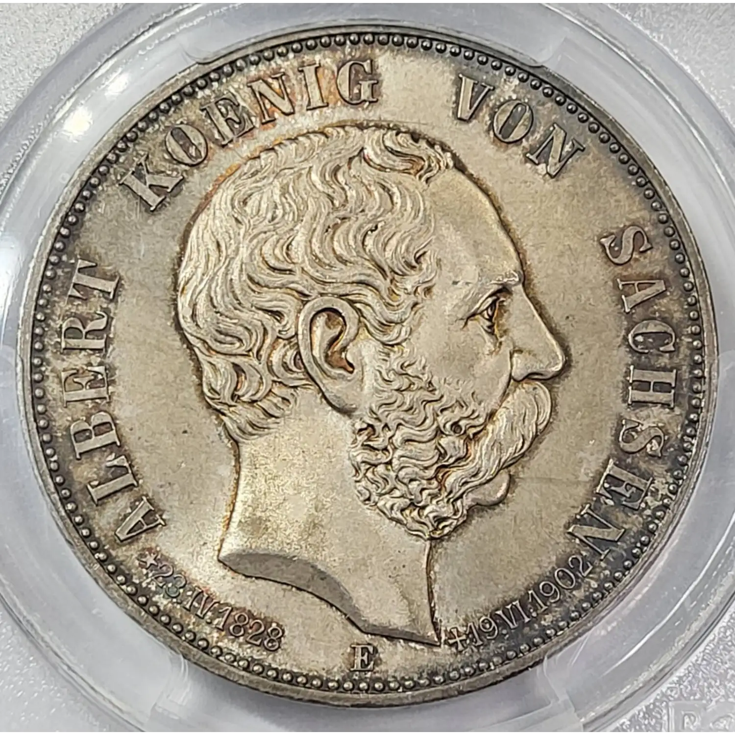 1902-E GERMAN STATES Silver 5 MARK PCGS MS-66 Death Saxony