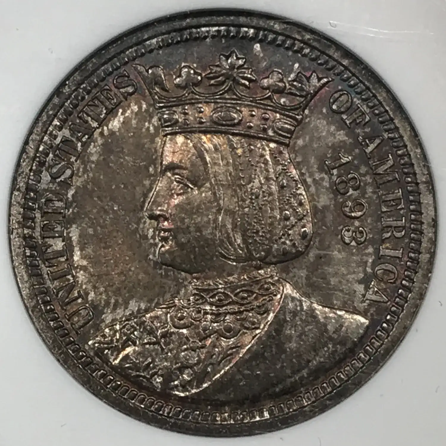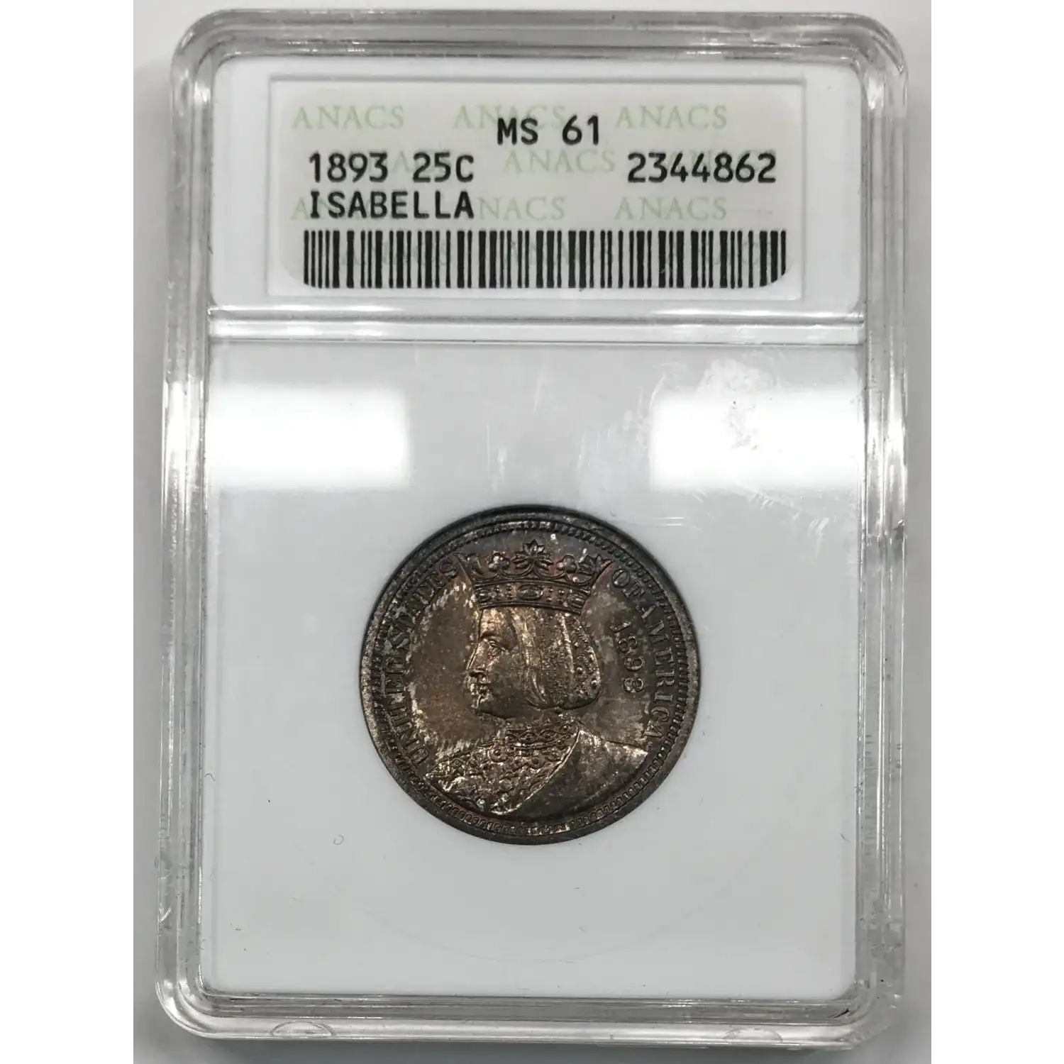 1893 P World's Columbian Exposition Isabella Quarter ANACS MS-61 - nice tone - old white soapbox holder