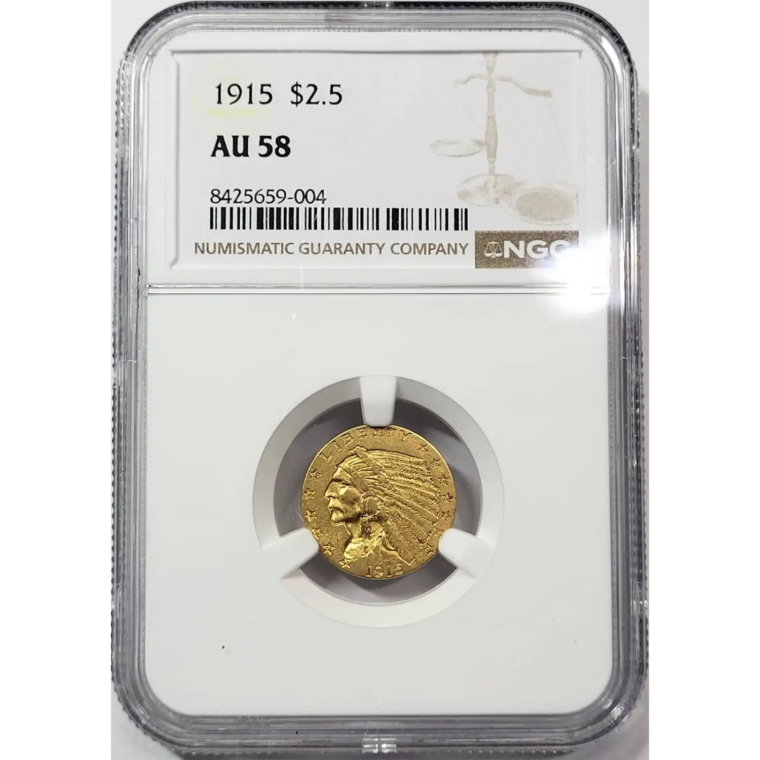1915 $2.50 Gold Indian Head Quarter Eagle NGC AU-58