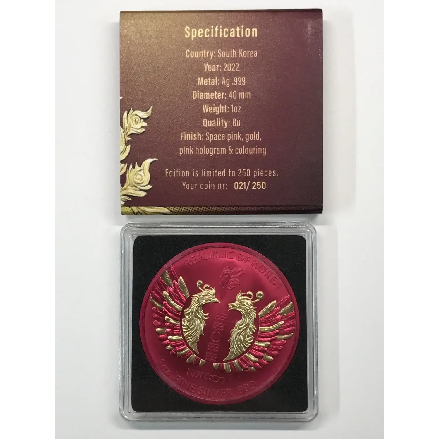 2022 Korean Phoenix KOMSCO Republic of Korea 1 oz silver round - HoloFlare Edition - colorized - COA# 021/250