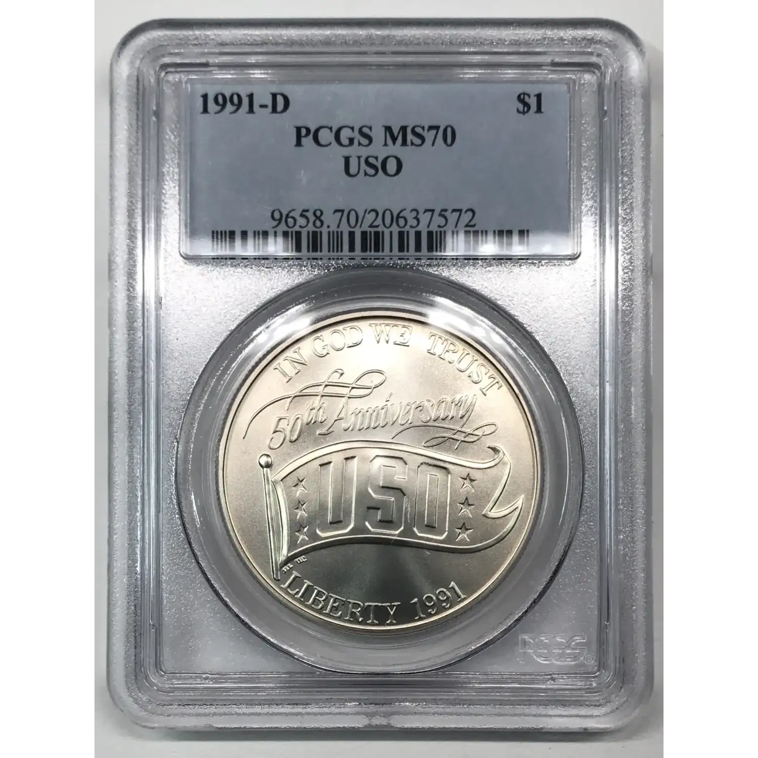 1991 D USO 50th Anniversary Commemorative Silver Dollar PCGS MS-70