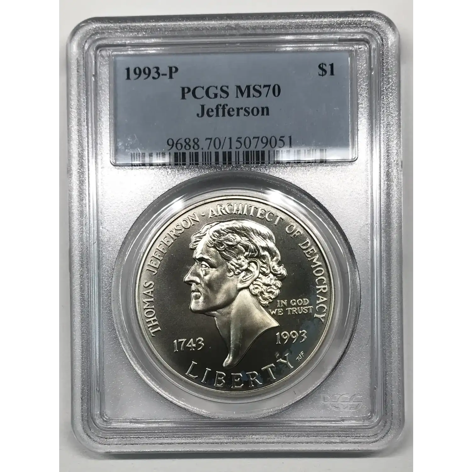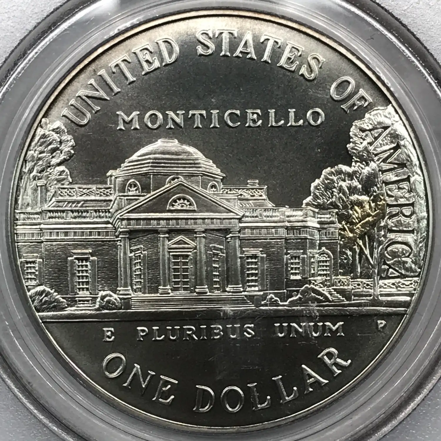 1993 P Thomas Jefferson 250th Anniversary Commemorative Silver Dollar PCGS MS-70 (toned/haze)