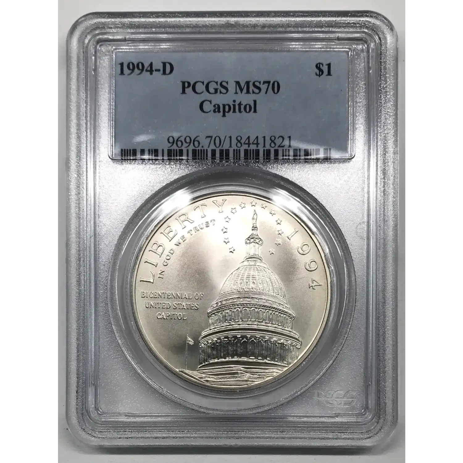 1994-D U.S. Capitol Bicentennial Commemorative Silver Dollar PCGS MS-70