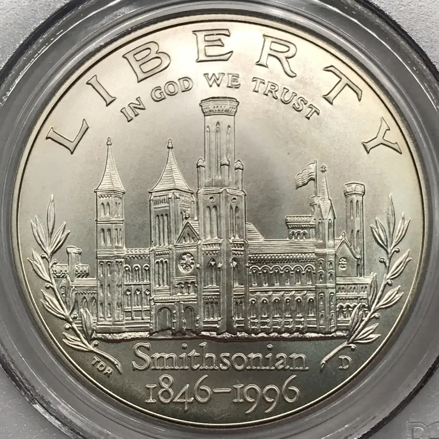 1996 D Smithsonian 150th Anniversary Commemorative Silver Dollar PCGS MS-70