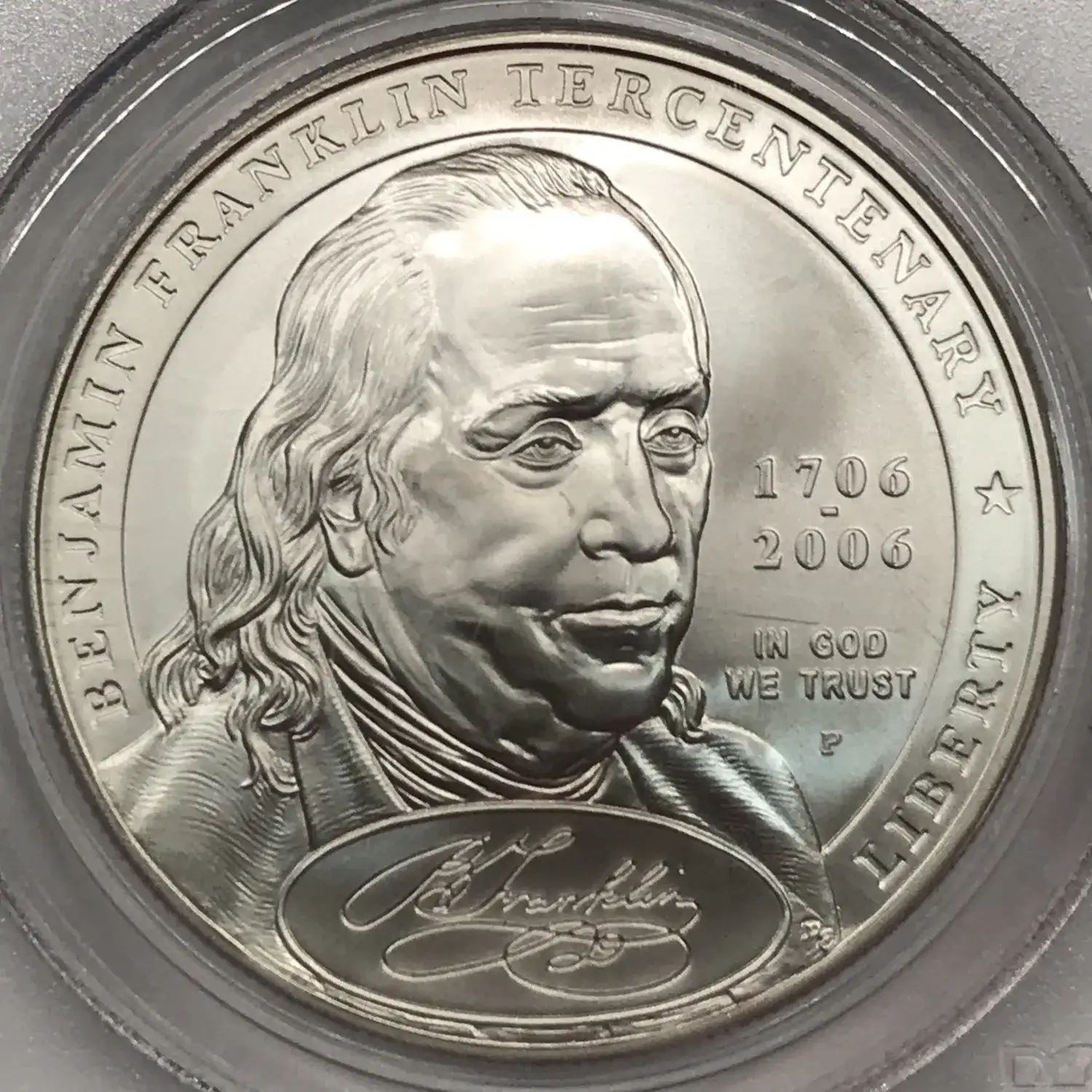 2006 P Benjamin Franklin Tercentenary Founding Father Commemorative Silver Dollar PCGS MS-70