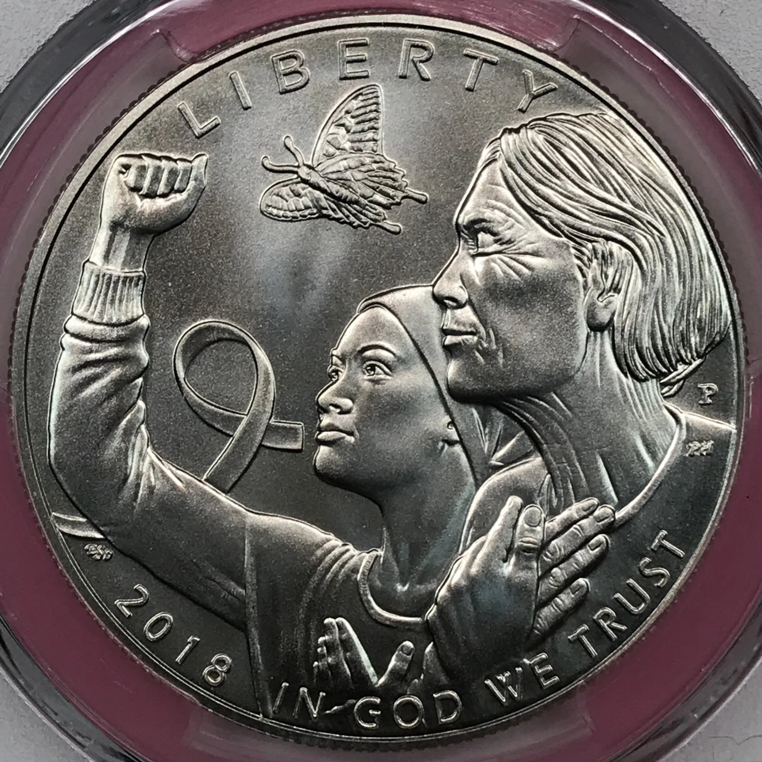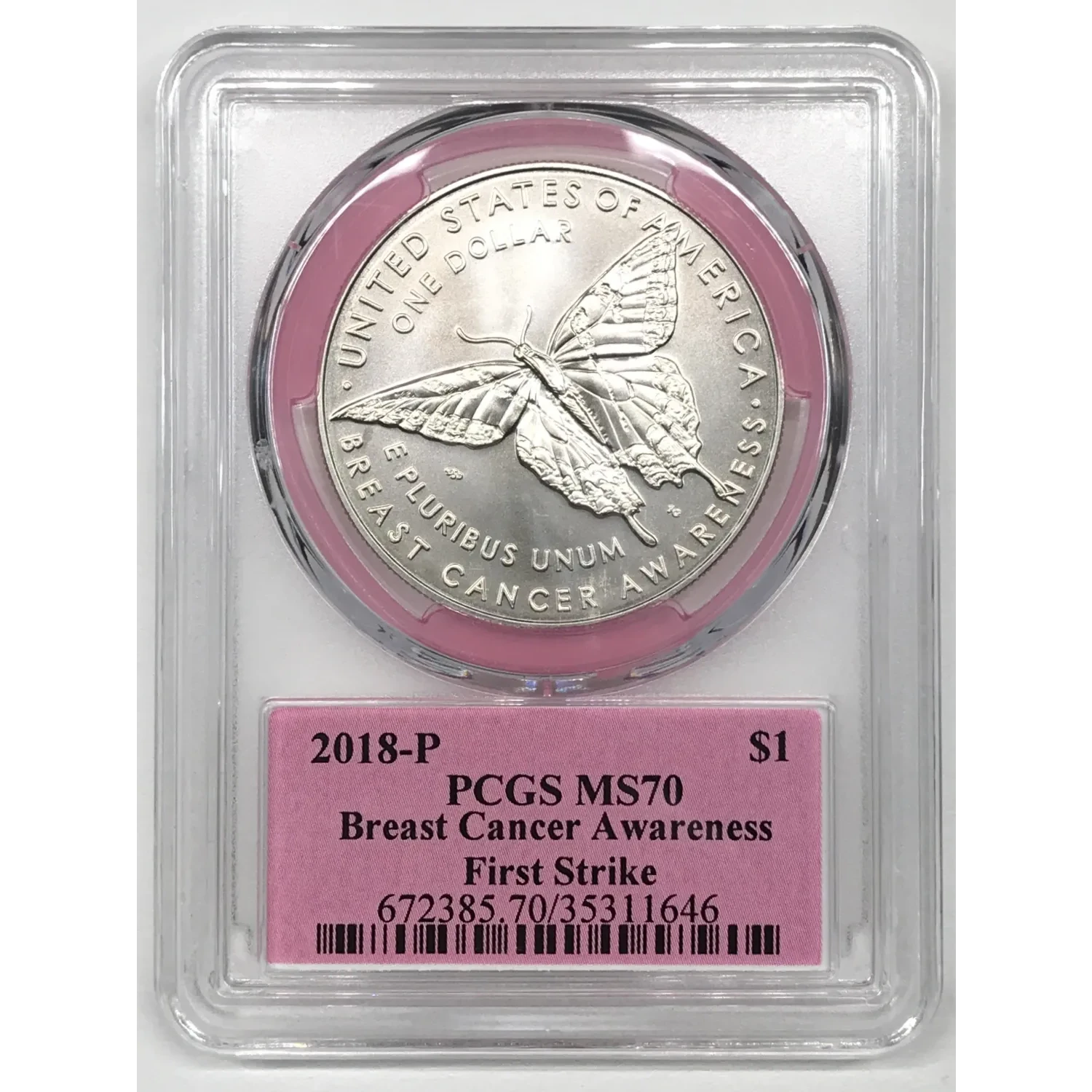 2018 P Breast Cancer Awareness Commemorative Silver Dollar PCGS MS-70 First Strike Pink Breast Cancer Research Foundation (BCRF) Label