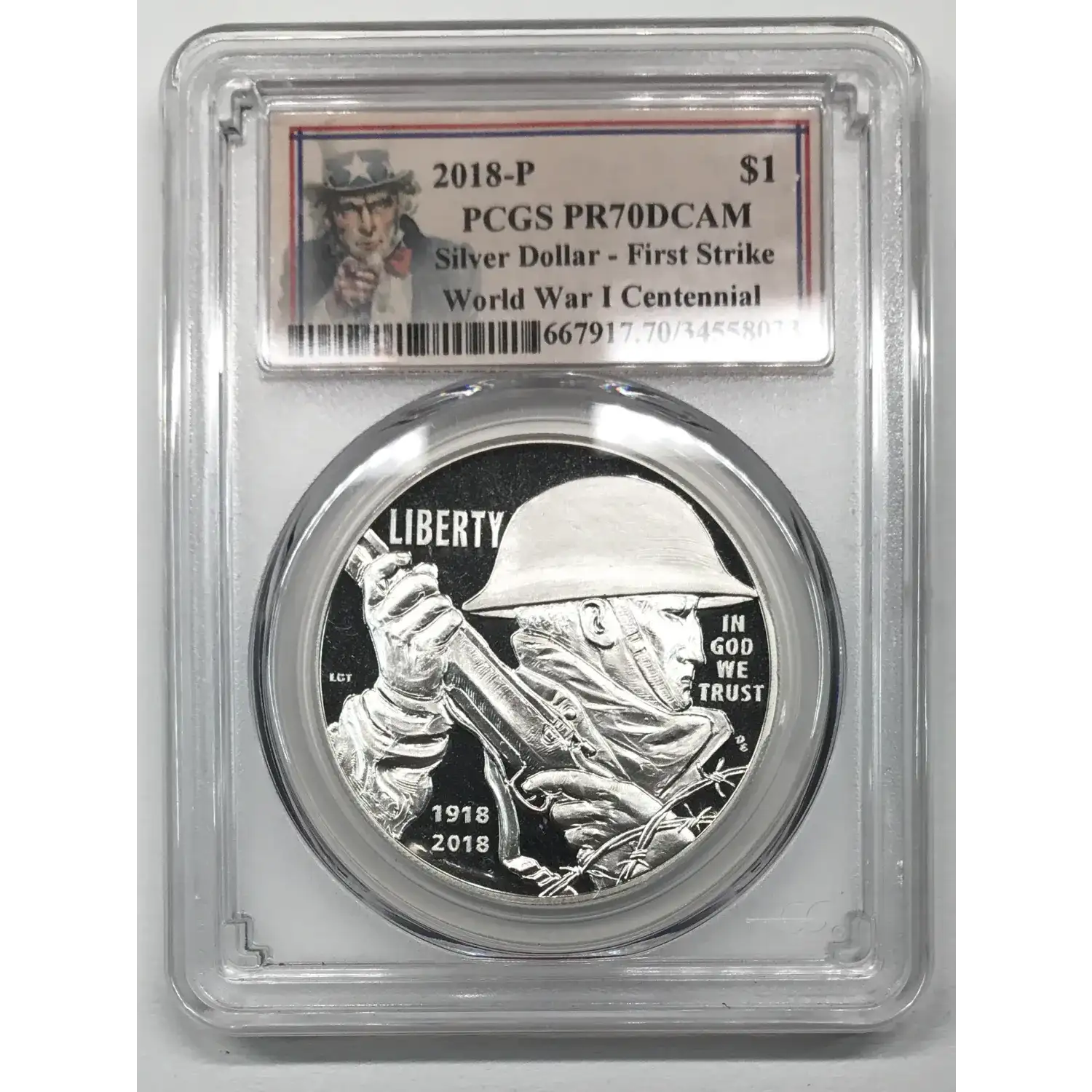 2018 P Proof World War I (WWI) Centennial Commemorative Silver Dollar PCGS PR-70 DCAM First Strike - Uncle Sam Label
