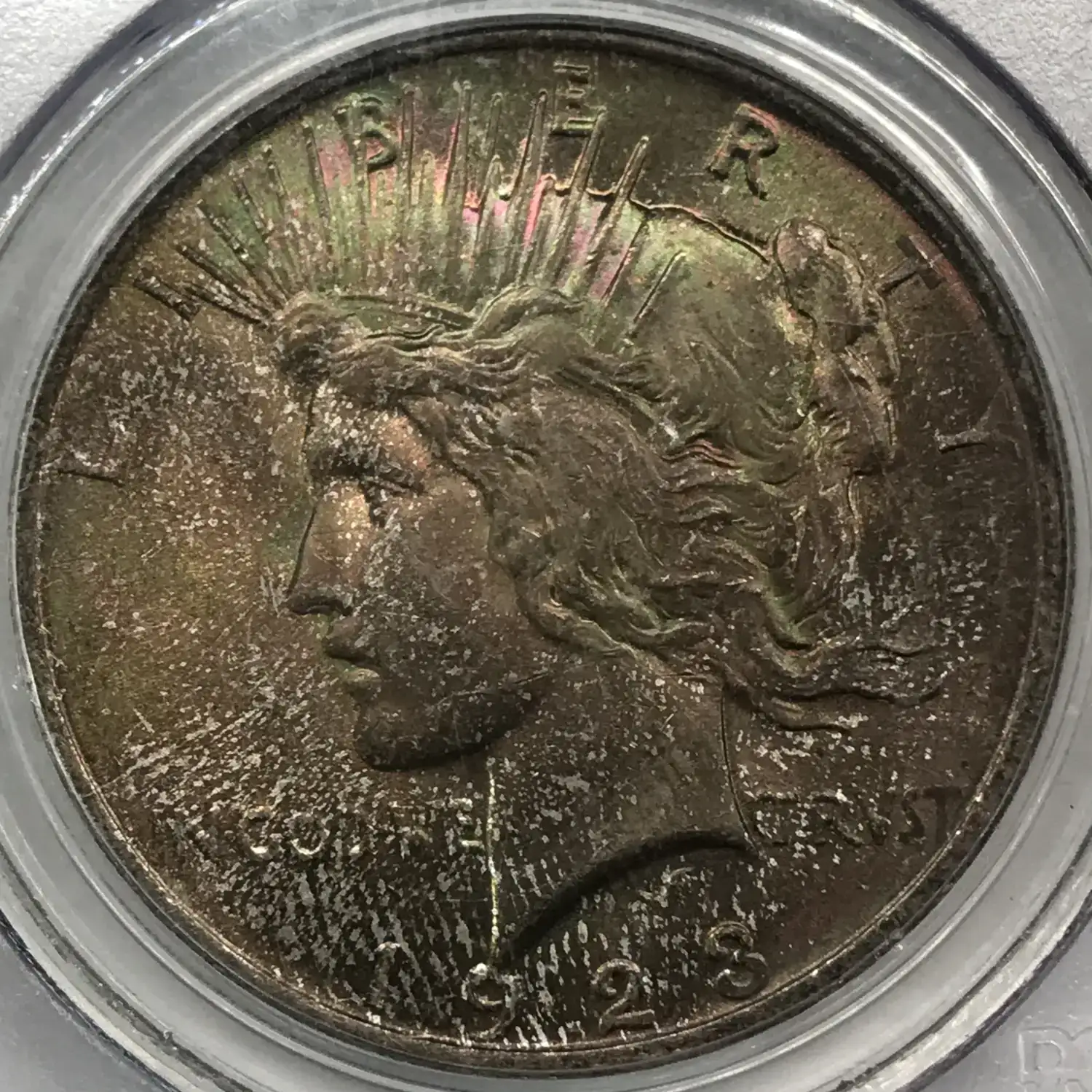1923 P Peace Silver Dollar PCGS MS-64 CAC *Green/Red Rainbow Toning*