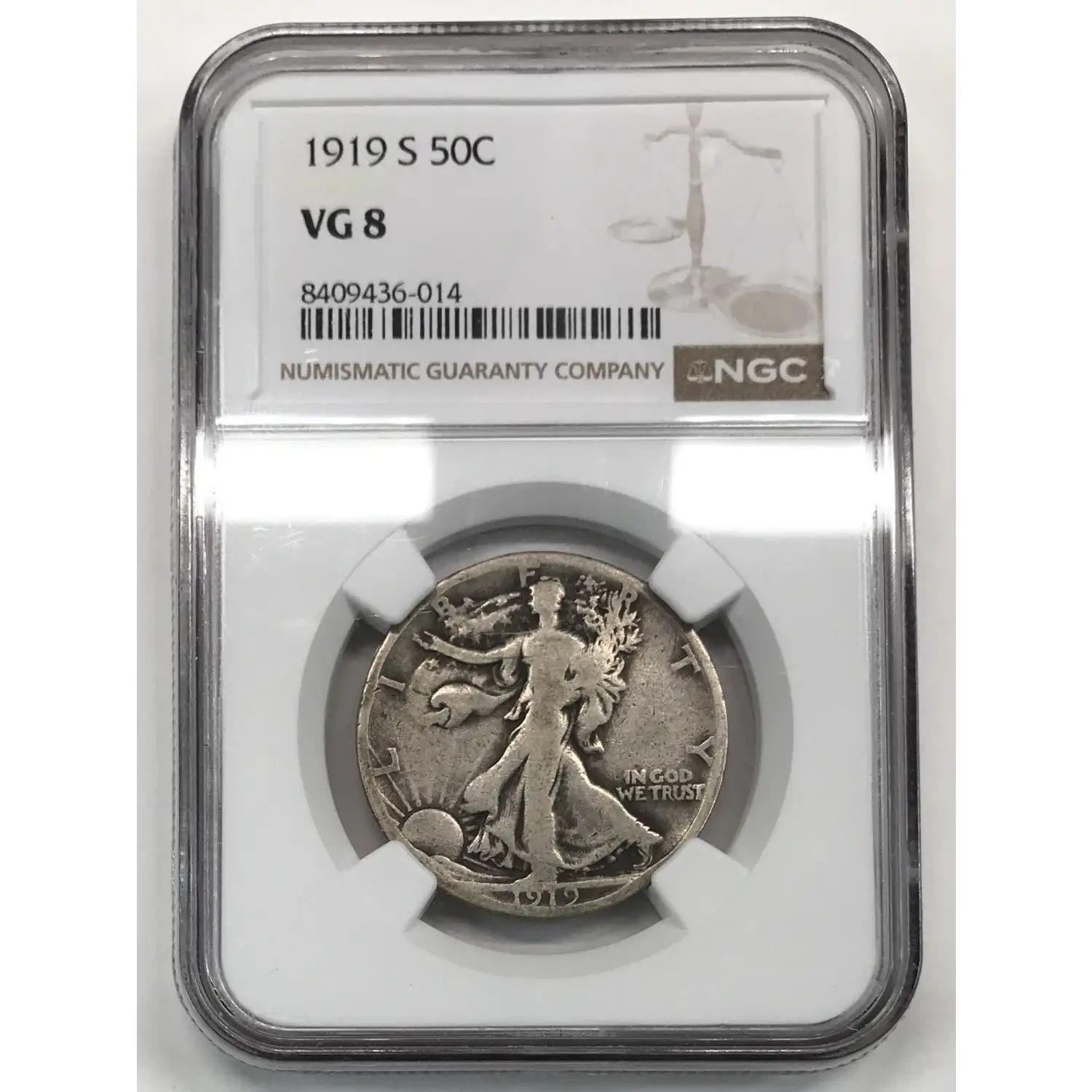 1919 S Walking Liberty Half Dollar NGC VG-8