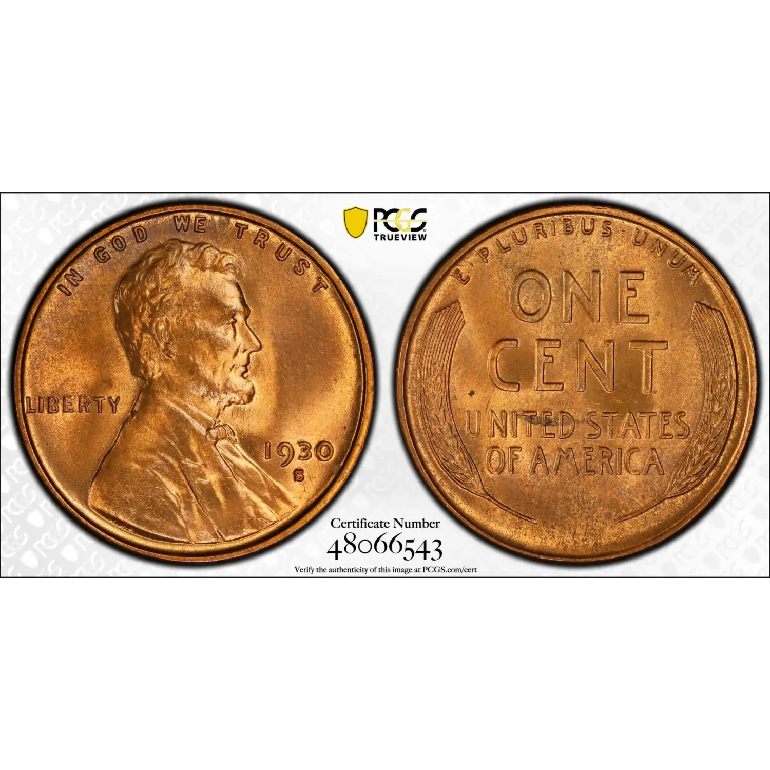 1930-S Lincoln Wheat Cent PCGS MS-65 RD