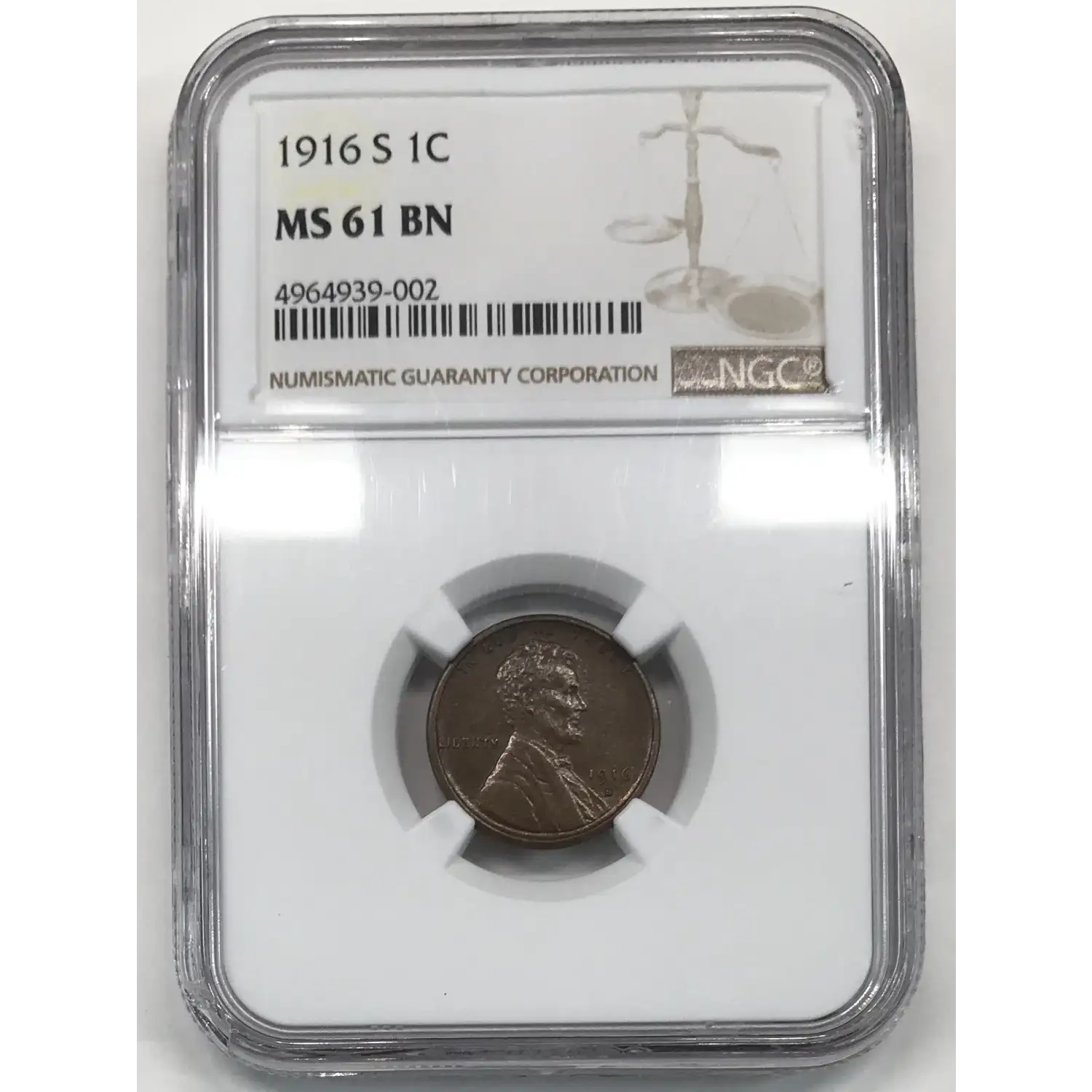 1916-S Lincoln Wheat Cent NGC MS-61 BN