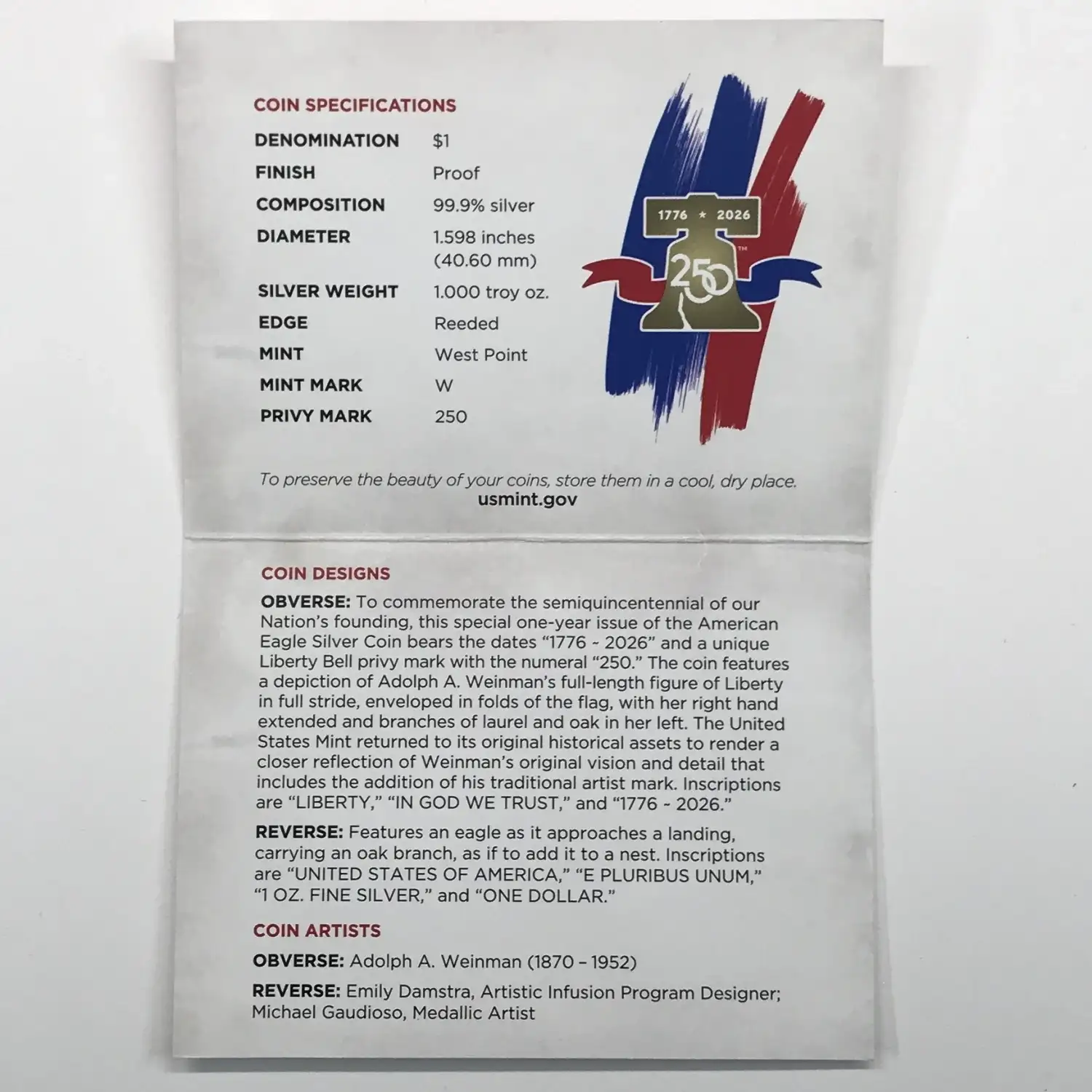 | Name | 1776-2026-W Liberty Bell 250 Privy Proof ASE w OGP |