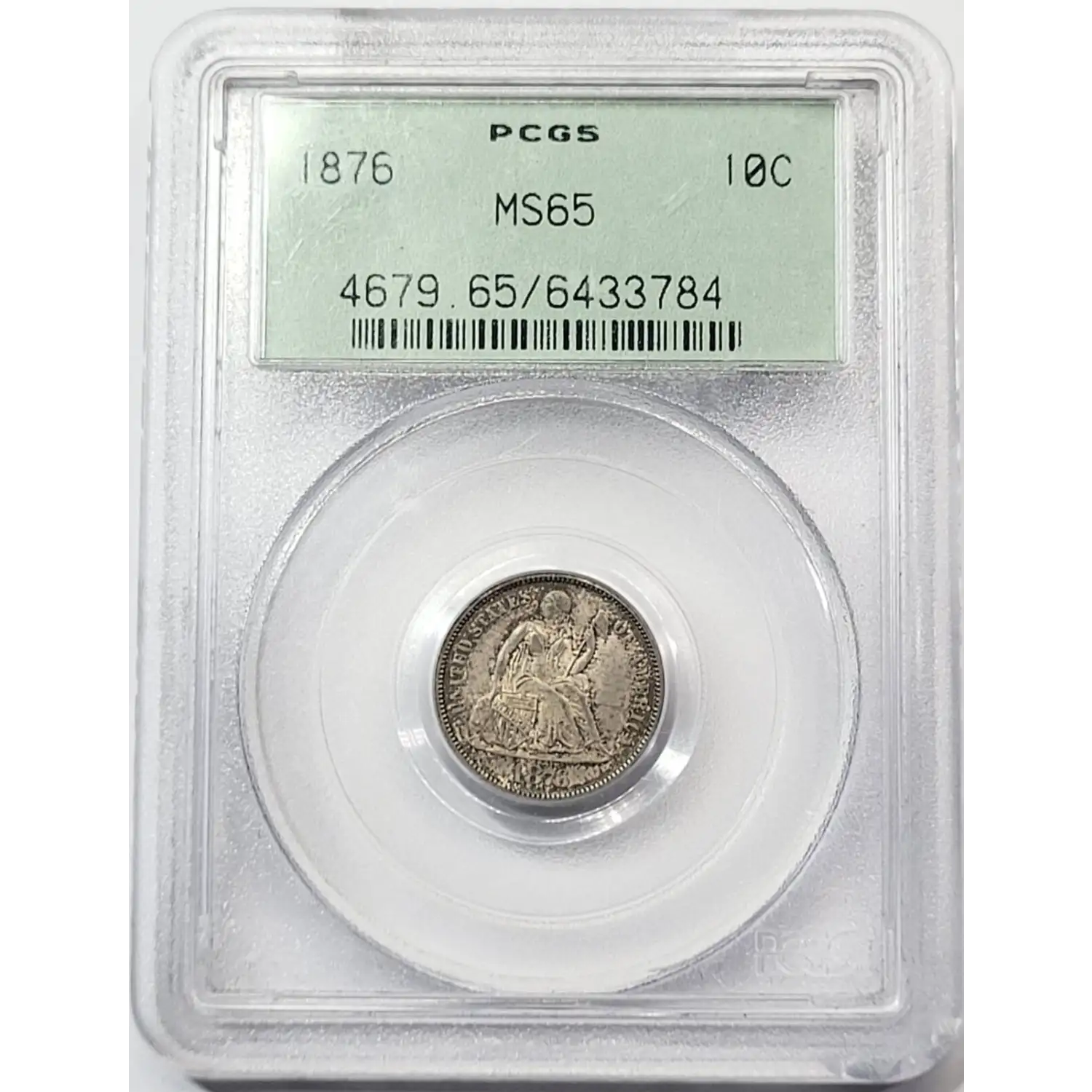 1876 P Seated Liberty Dime PCGS MS-65